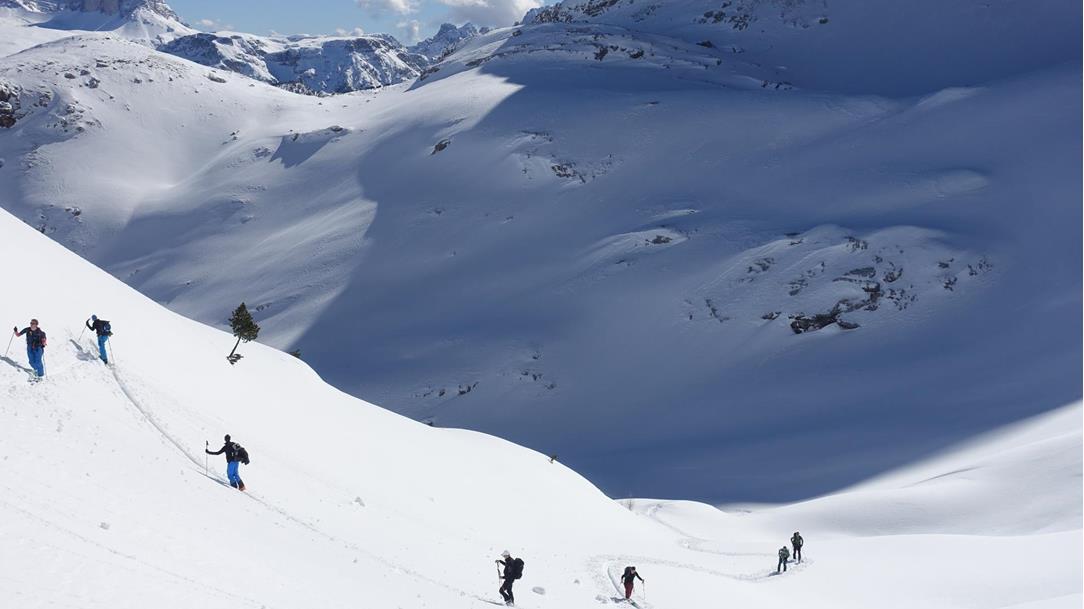 Von Jahr zu Jahr werden die Schneemengen in den Alpen immer weniger. Sogar von einem Gebiet zum anderen, ja sogar von einem Tal zum anderen, unterscheiden sie sich stark. Wie gut, dass unsere Bergführer immer genau wissen, wo es die besten Schneebedingungen gibt.