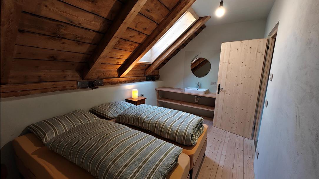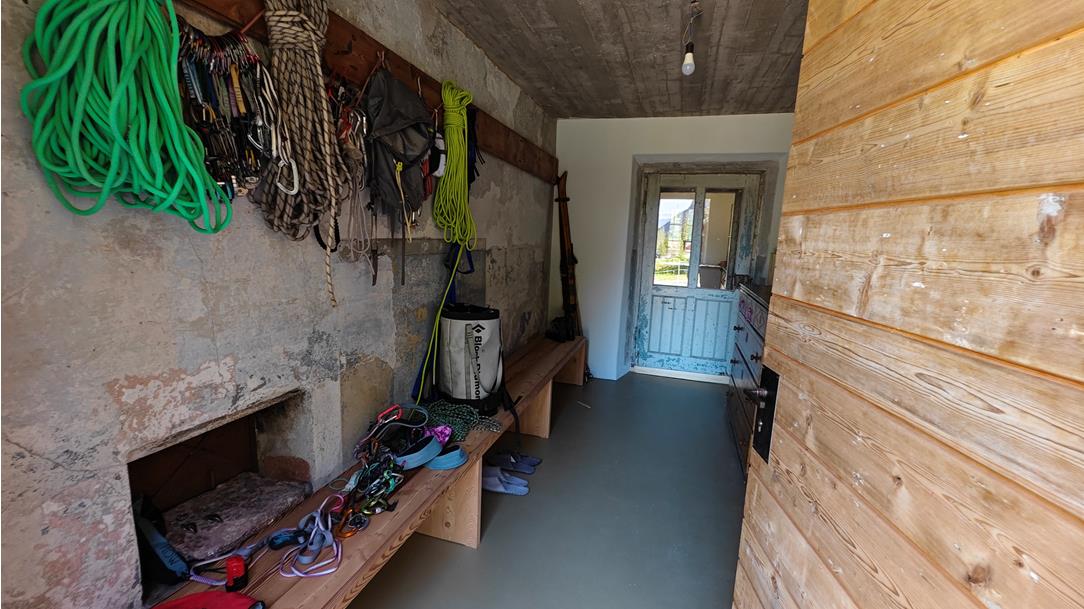 Das Haus bietet Platz für 8 Teilnehmer/innen plus Bergführer & Koch – ideal für eine entspannte, gemeinschaftliche Kletterwoche. Nach einem erlebnisreichen Tag am Fels klingt der Abend bei gemeinsamem Kochen, Essen und gemütlichem Beisammensein am Feuer aus. Die Unterkunft verfügt über fünf Zweibettzimmer mit Waschbecken, zwei Duschen und drei Toiletten. Draußen laden Pizzaofen, Grill für die lauen Sommerabende ein, während drinnen ein großer Gemeinschaftsbereich zum Genießen, Ratschen, Lesen oder Spielen einlädt.
