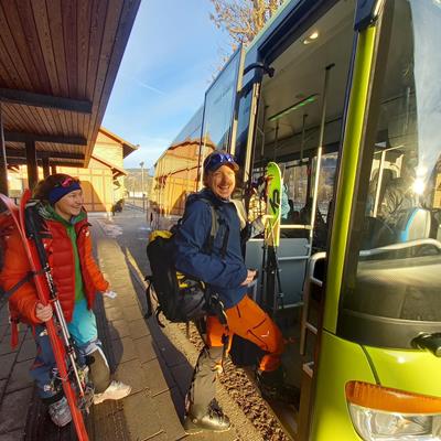 (kostenlose Leihausrüstung bei Anreise mit öffentlichen Verkehrsmitteln, Förderung der Bildung von Fahrgemeinschaften,
