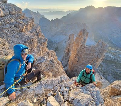 Programm: Do: Treffpunkt um 16.00 Uhr am Sellajoch. Auffahrt mit Seilbahn zur Toni-Demetz-Hütte. Programmbesprechung beim gemeinsamen Abendessen. Fr-So: drei Tourentage mit folgenden Möglichkeiten: Überschreitung Fünffingerspitze, Grohmannspitze, Innerkoflerturm, Langkofel. Abreise am letzten Tag nach der Tour.