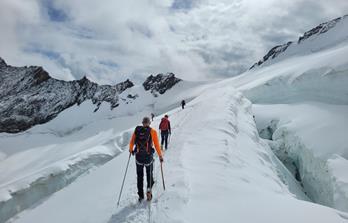 professionellen Bergführer sorgen für Ihre Sicherheit und führen Sie sicher auf die schönsten Gipfel der Alpen. Eine Hochtour mit Globo Alpin bedeutet, die alpine Bergwelt von ihrer spektakulärsten Seite zu erleben – fernab der ausgetretenen Pfade, umgeben von beeindruckenden Gletscherlandschaften.