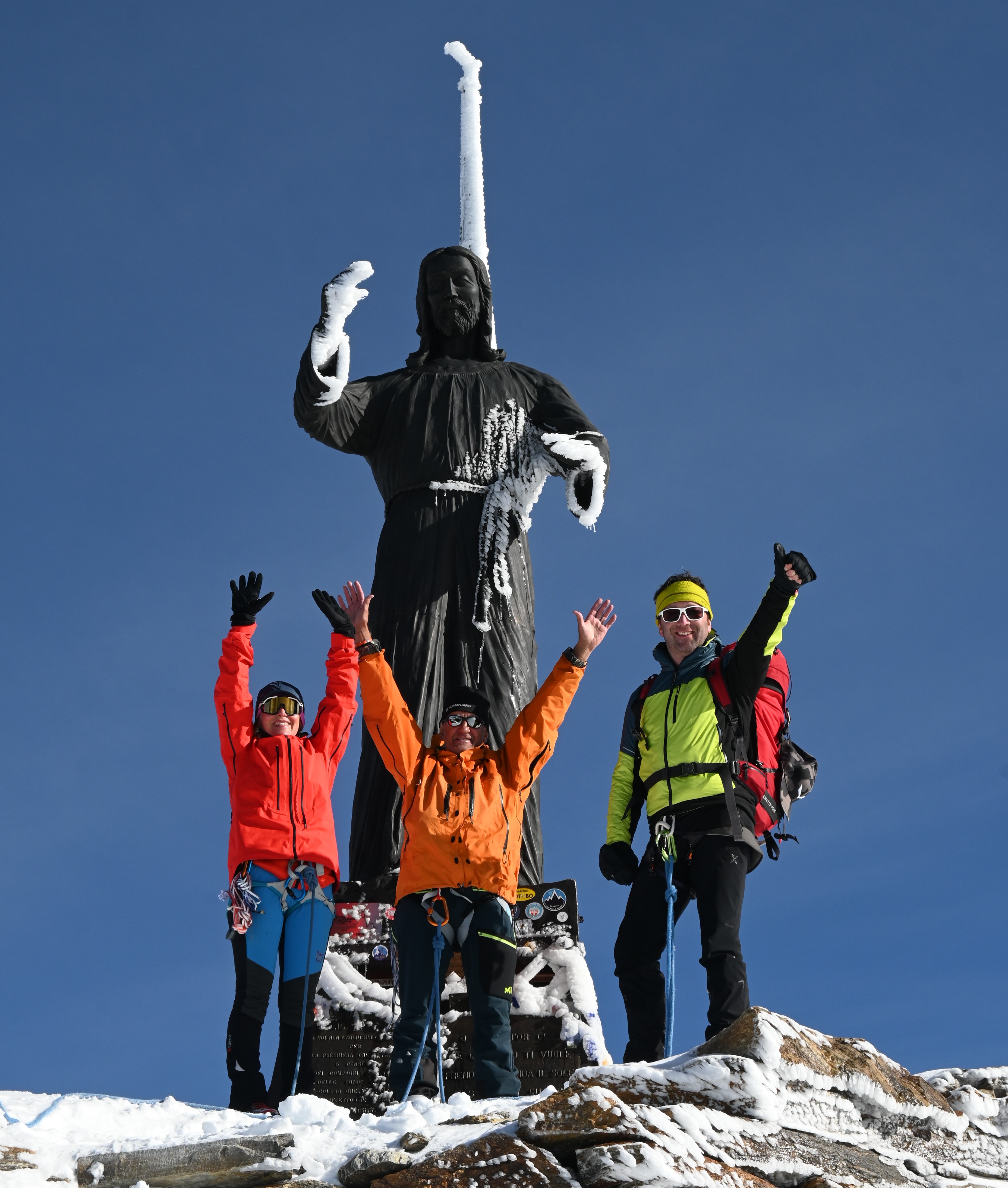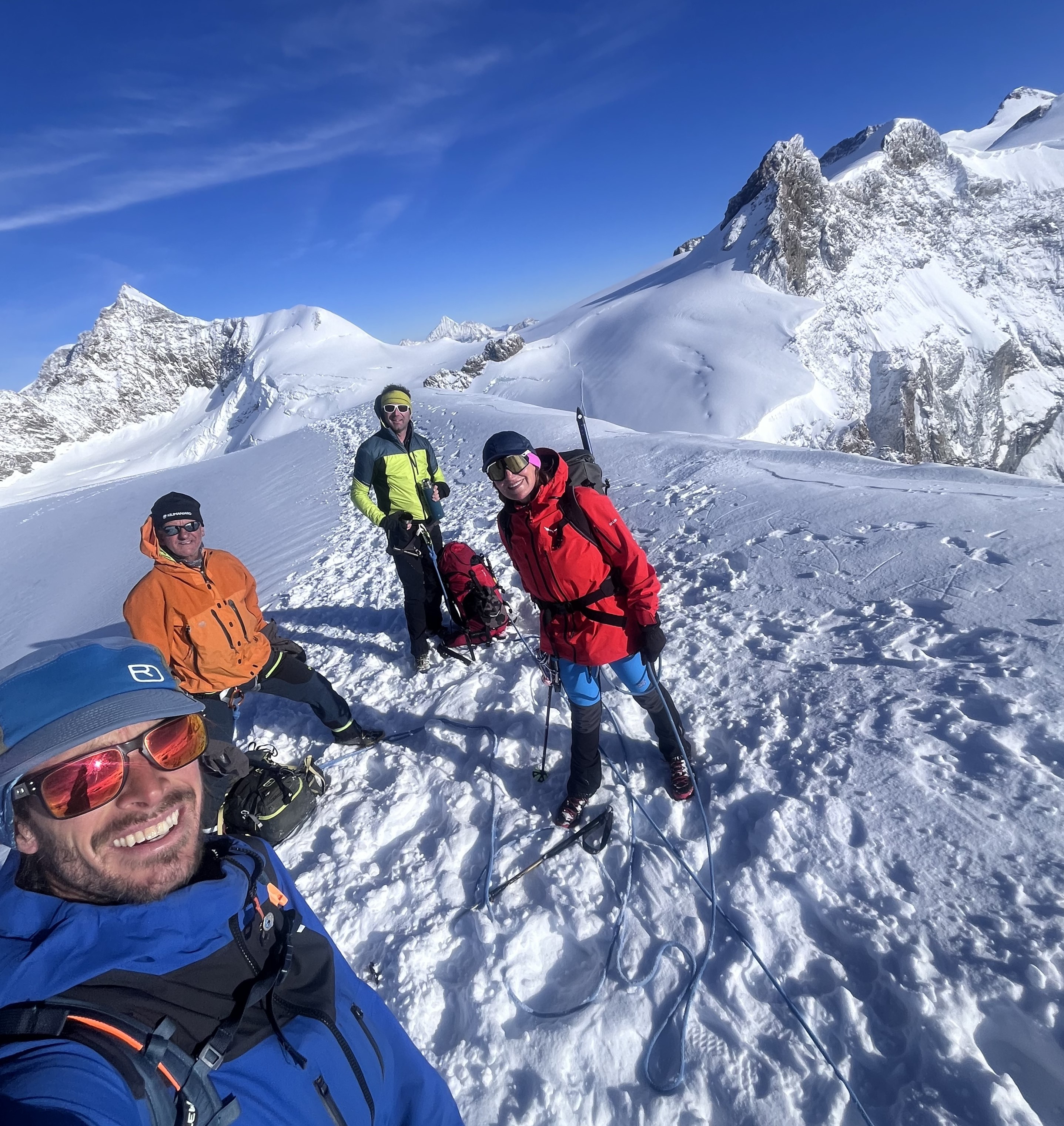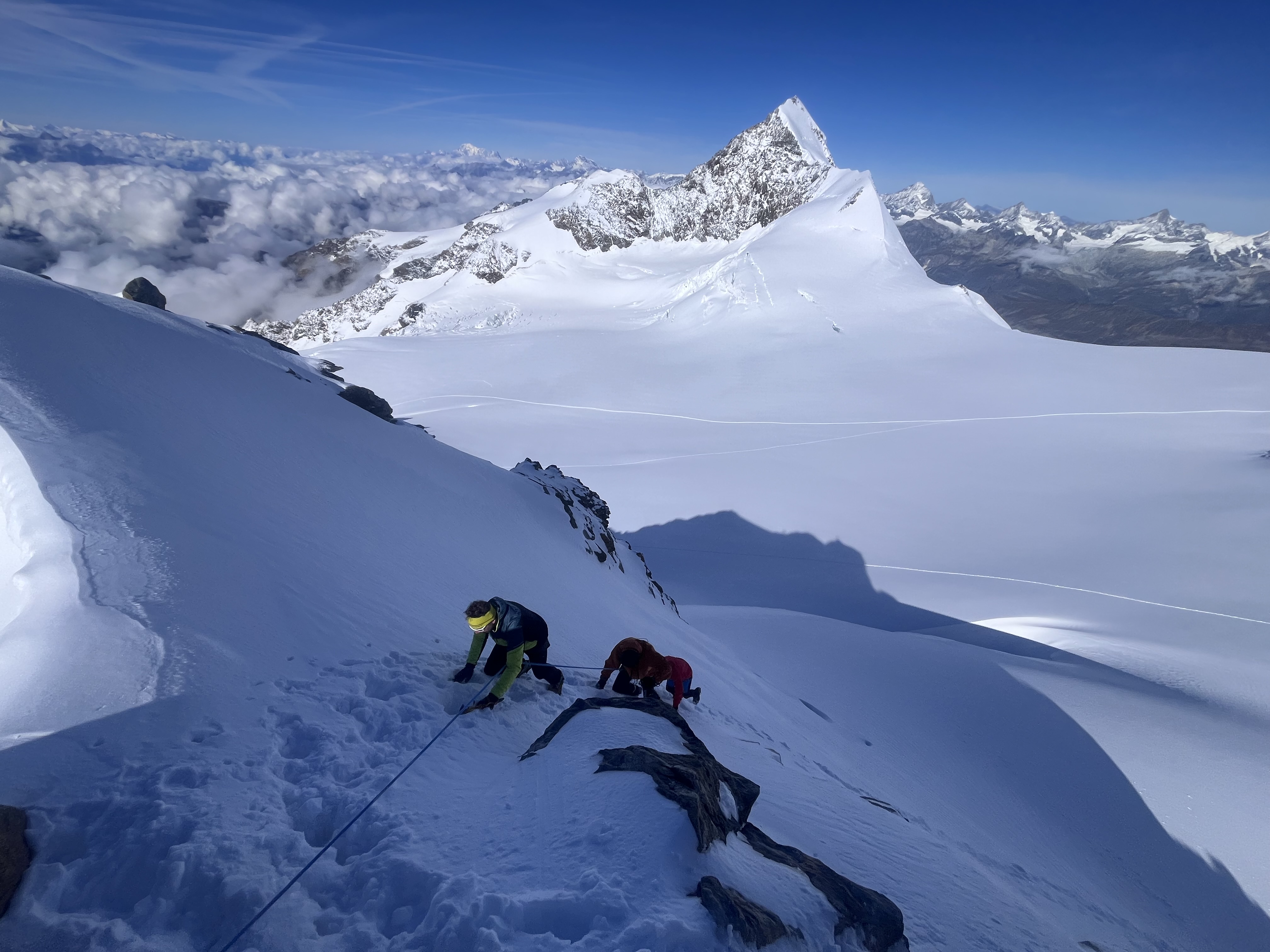 Programm: 1.Tag: Anreise Herbriggen. 2. Tag: Seilbahn Klein-Matterhorn - Breithorn 4164m - Val d’Ayas-Hütte. 3394m. 3. Tag: Überschreitung Castor 4228m - Quintino Sella Hütte 3585m. 4. Tag: Il Naso 4272m - Balmenhorn 4167m - Vincentpyramide 4215m - Gnifettihütte 3647m. 5. Tag: Corno Nero 4321m - Ludwigshöhe 4341m - Parrotspitze 4432m - Signalkuppe mit Capanna Margherita 4554m. 6. Tag: Zumsteinspitze 4563m - Monte Rosa Hütte 2883m, Abstieg. 7. Tag: Heimreise.