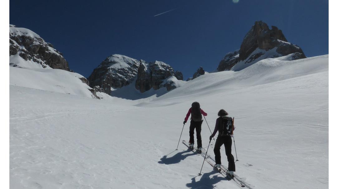 Die Brentagruppe hat sich lange Zeit hartnäckig der winterlichen Erkundung erwehrt und ist bisher nur bei den Trentiner Bergsteigern als Skitourenziel bekannt und beliebt. Dies verwundert, wenn man bedenkt, wie umschwärmt die Brenta im deutschsprachigen Raum bei Wanderern und Klettersteiggehern ist. Auch wir von der GLOBO ALPIN haben uns lange Zeit von den felsigen und unnahbar erscheinenden Bergen abschrecken lassen und erst in den letzten Jahren herausgefunden, welch geniale Skitouren sich in dieser grandiosen Landschaft verbergen. Unterstützt durch die Aufstiegsanlagen von Madonna di Campiglio gelangen wir tief in das Herz der Brenta hinein und über Scharten, Rinnen und Kare gleiten wir mit unseren Skiern durch diese Felslandschaft, bis uns am Tagesende immens lange Abfahrten wieder zurück ins Tal führen.