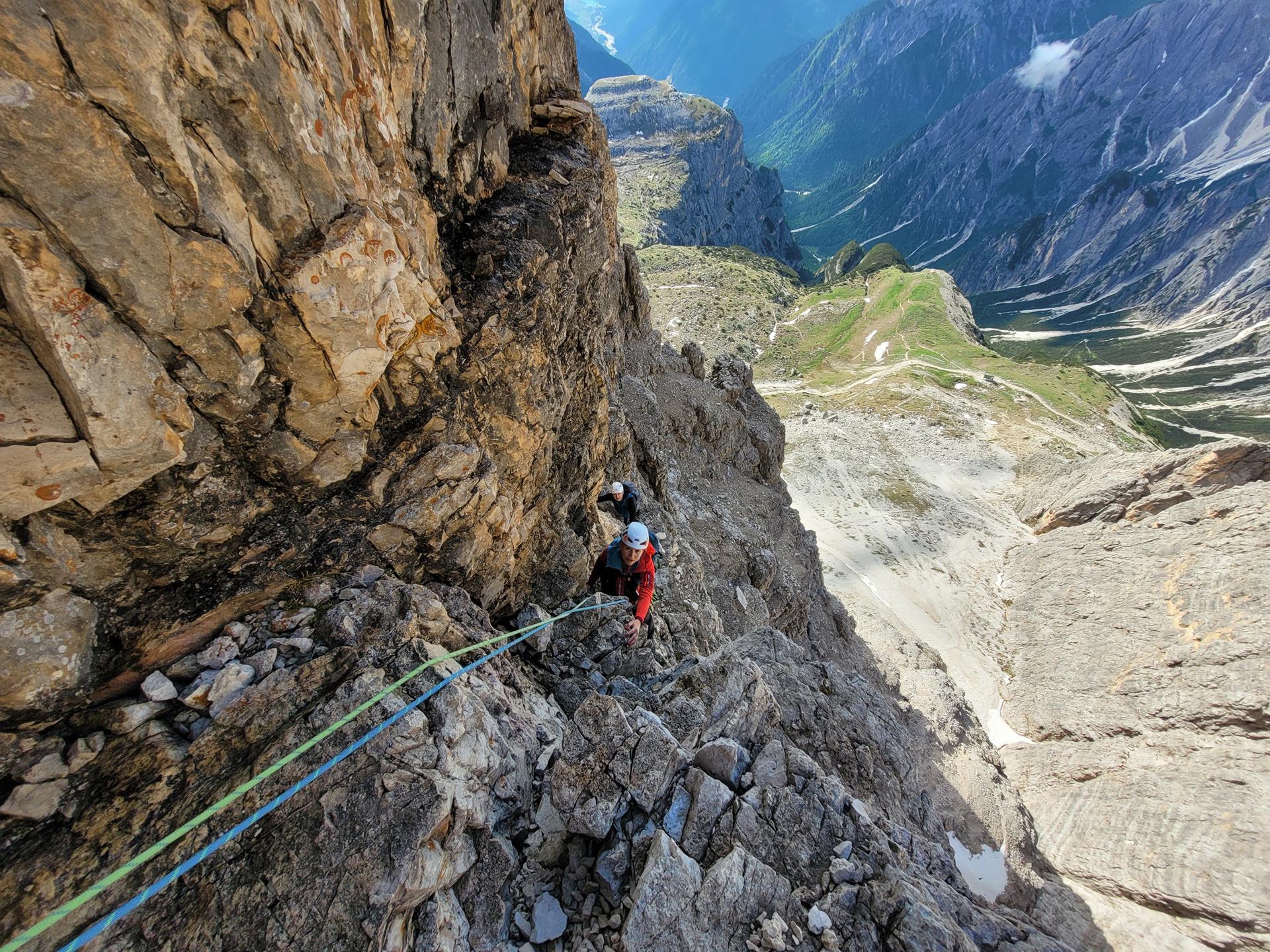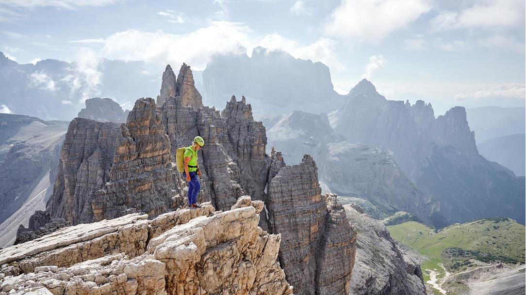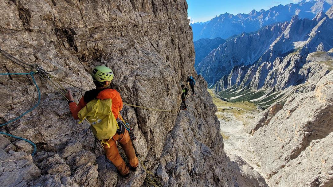 Die Drei Zinnen in den Dolomiten - sie sind ein Rätsel aus Stein, scheinen unnahbar und phantastisch. Die Route zählt zu den schwierigsten Normalwegen auf eine der Drei Zinnen. Die Kletterei ist ausgesetzt und der Abstieg unvergesslich. Komm mit und erlebe das weltweit einmalige „Dreigestirn“ hautnah. Der GLOBO ALPIN Bergführer bringt dich sicher ans Ziel.