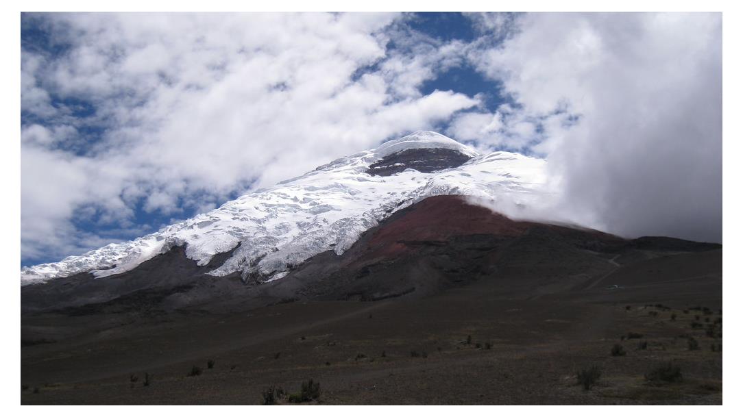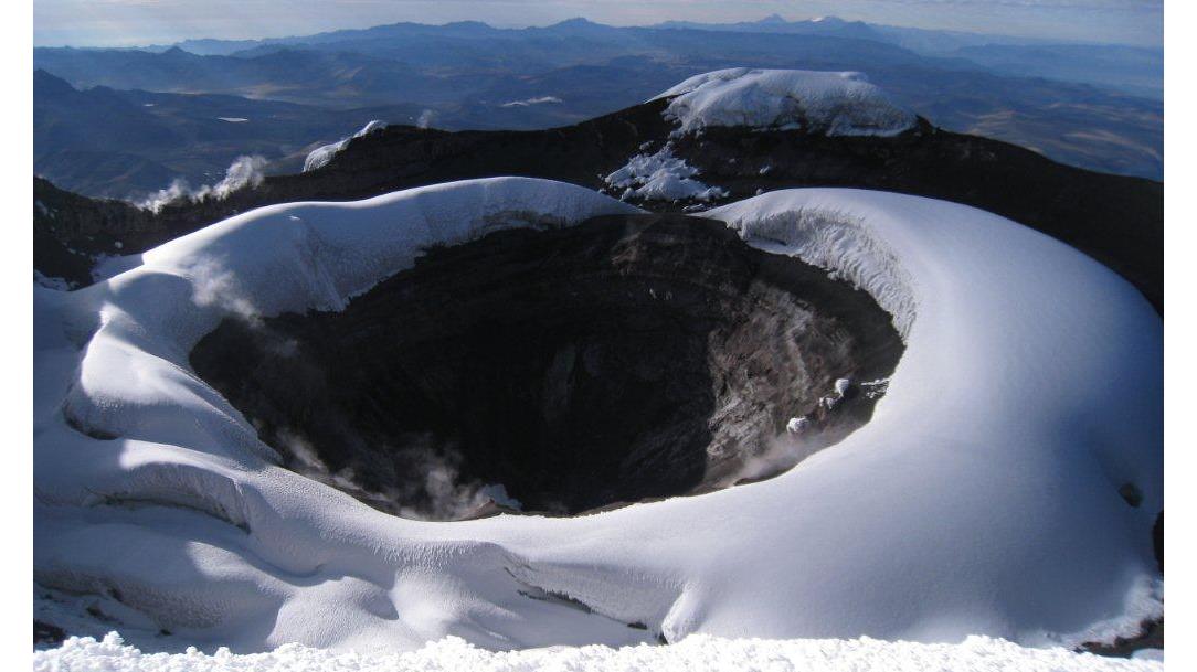 Den Namen Ecuador trägt das Land aufgrund seiner Lage, denn „ecuador“ ist die spanische Bezeichnung für Äquator. Dank der günstigen Lage kann sich Ecuador das ganze Jahr über guten Wetters erfreuen und dank der Straßen und Pisten, die zu den jeweiligen Ausgangspunkten führen, können alle Gipfel mit einem Tagesrucksack bestiegen werden. Im Umkreis der Vulkane gibt es zahlreiche Thermalquellen, die zum Erholen einladen. Der Cotopaxi 5897m, von den Indios Hals des Mondes genannt, erhebt sich majestätisch aus den Ost-Kordilleren und zählt zu den aktiven Vulkanen Ecuadors. Vom Gipfeleisring eröffnet sich ein spektakulärer Blick über die weite Andenlandschaft. Der Antisana 5758m, an dem Gletscher- und Lavaströme gleichermaßen zu Tale fließen, bildet den Rand vom Hochland zum Urwald hin. Die Nähe zum Amazonasbecken lässt Pize aus Raureif die Grate überziehen. Die vergletscherte Südflanke des Cayambe 5790m hingegen ist der einzige Ort der Erde, auf dem der Äquator über ewiges Eis verläuft. Er ist der dritthöchste Berg Ecuadors und gehört zum Naturreservat Cayambe-Coca. Trotz der Nähe zu Quito wird er relativ wenig besucht.