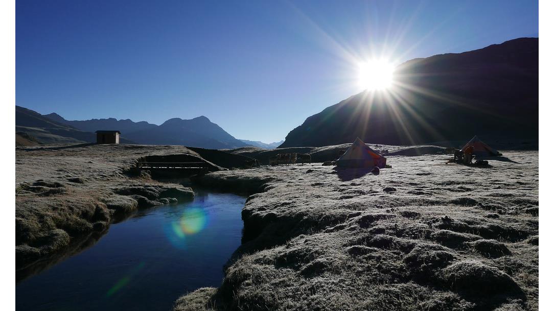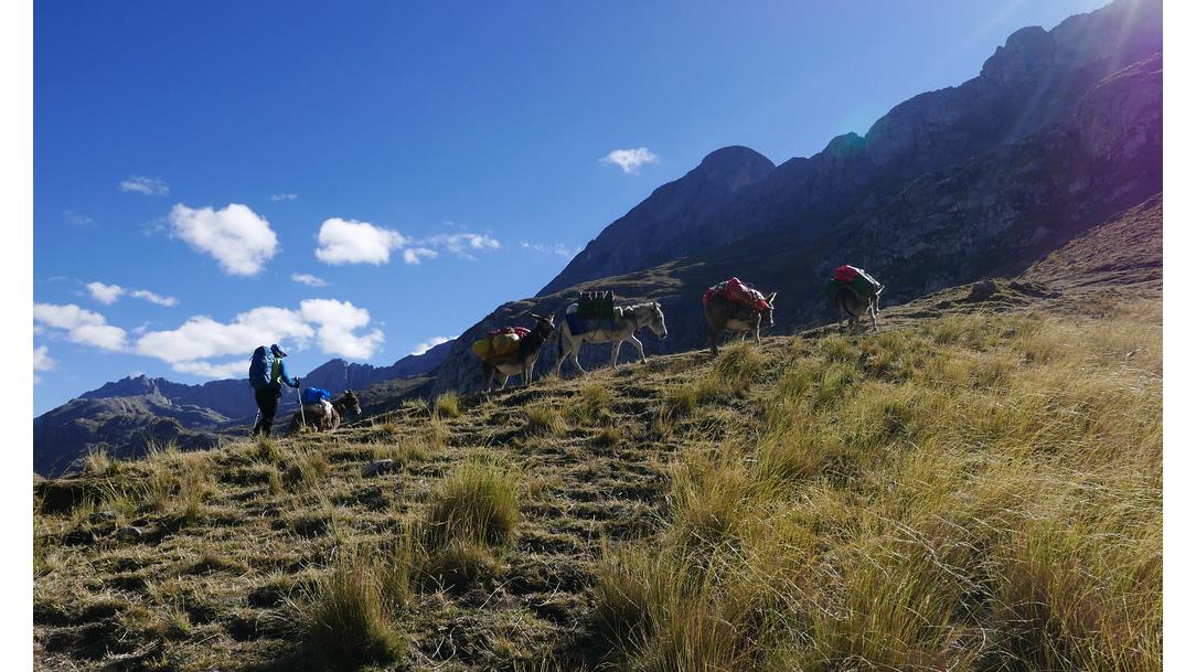 11. Tag: Nach einem gemütlichen Frühstück bringt uns der Bus nach Pashpa, wo die Esel bereits warten und in 4 bis 5 Stunden wandern wir in das Ishinca Basislager auf 4350m.