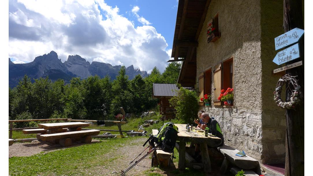 Dai, andiamo a fare un Viaz! So klingt es, wenn die Einheimischen des Val di Zoldo sich gegenseitig motivieren eine Bergtour zu unternehmen. Ein "Viaz" ist demnach nicht eine normale Bergtour entlang ausgeschilderter Wanderwege, Klettersteige usw., sondern eine Linie, die die Natur in genialer Art und Weise durch die wilde Dolomitenlandschaft vorgegeben hat und dementsprechend vorwiegend von Gebietskennern begangen wird. Auch wir folgen bei unseren Touren z.T. diesen Wegen durch steile Schluchten, über versteckte Scharten, vor allem aber entlang ausgesetzter Bänder und Grate, welche die Felswände durchziehen. Eine bessere Möglichkeit, die Wildheit und Ursprünglichkeit dieses weit im Süden gelegenen UNESCO-Dolomitengebietes hautnah zu entdecken und zu erleben, wird es kaum geben. Bergsteigen in seiner reinsten Form eben! Dementsprechend ist richtiges Kletterkönnen für diese Touren nicht Voraussetzung. Gute Trittsicherheit hingegen und die Fähigkeit, ausgesetzte Wegpassagen sicher und selbständig zu begehen, sind notwendig, um die Tage wirklich genießen zu können. Gefunden haben wir diese Touren, wie schon eingangs erwähnt, im Val di Zoldo, jenem tief im Süden gelegenen Dolomitental, dessen Bekanntheit im deutschen Sprachraum am ehesten von den vielen Gelatieri (Eisverkäufern) herrührt, die nach Deutschland ausgewandert sind. Die Berggipfel, die das Tal einrahmen, wie die Cima di San Sebastiano, Spiz di Mezzodi, Sasso di Bosconero usw., führen nach wie vor ein ziemliches Dornröschendasein und eignen sich dementsprechend prächtig für unsere Unternehmungen. Für historisch und kulturell interessierte Teilnehmer und als lohnende Alternative bei schlechtem Wetter findet man in nächster Nähe Interessantes, wie z.B. das Messner Mountain Museum "Monte Rite" direkt über Forno di Zoldo. Stimmig abgerundet wird das Programm durch die einzigartige Unterkunft, welche wir bereits bei unseren winterlichen Unternehmungen im Zoldaner Tal überaus schätzen und lieben gelernt haben.