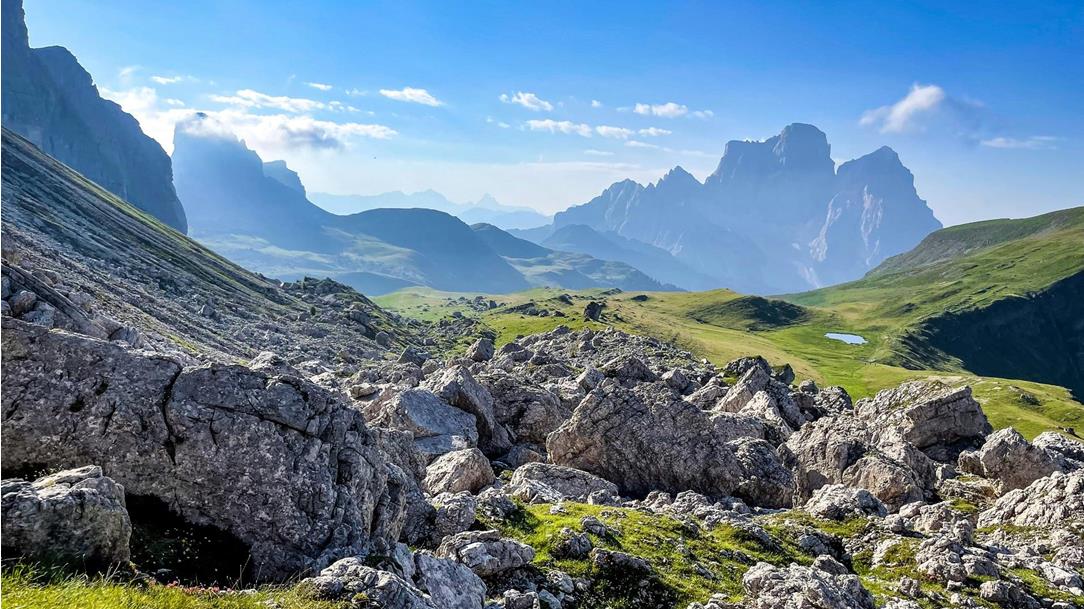Und zwar dort, wo deutlich weniger Menschen unterwegs sind. Dies schon deshalb, da immer in Schutzhütten (Rifugios) übernachtet wird, um die Etappen in dieser Form überhaupt begehen zu können. Der Großteil des Höhenweges führt entlang unbekannter Abschnitte auf Tuchfühlung mit den imposantesten und höchsten Gipfeln der Gegend, wie dem Antelao und dem Sorapiss. Zum Ende der Woche nähern wir uns dann den berühmteren Plätzen der Ampezzaner Dolomiten, um die Tour auf einem der schönsten Dolomitenpässe, dem Passo Giau, direkt oberhalb von Cortina zu beenden.