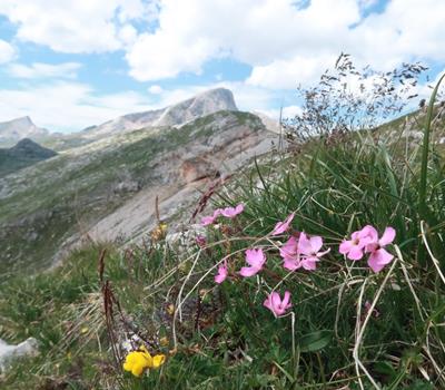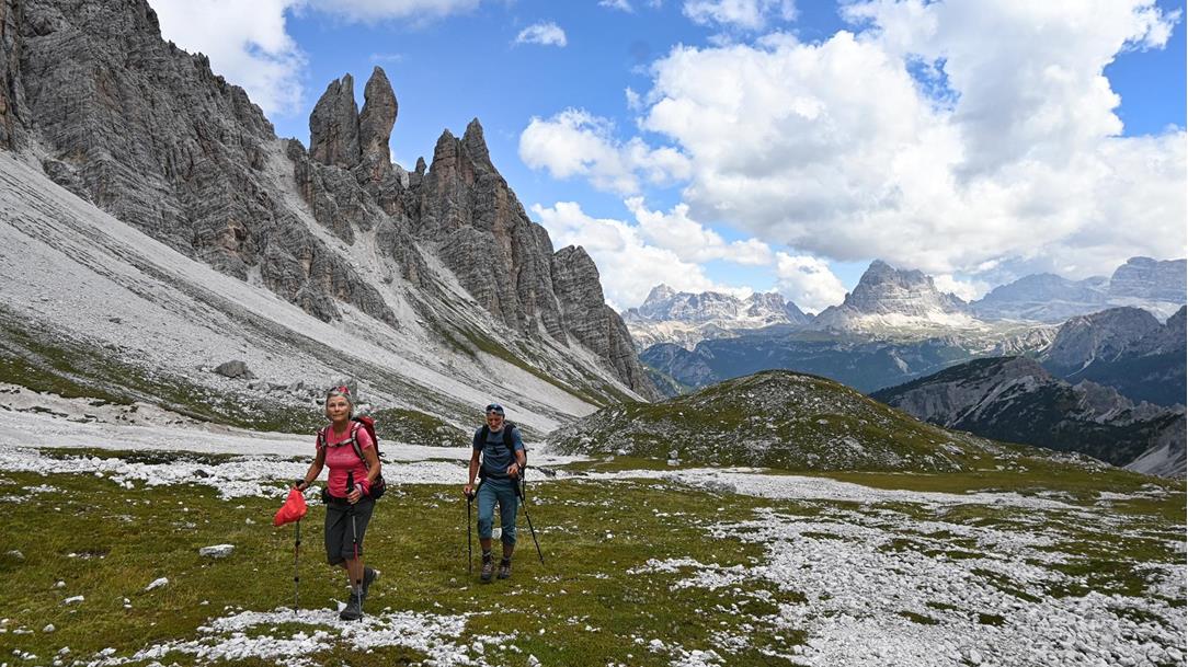 Gleich wie Cortina im Italienischen immer den Beinahmen Ampezzo trägt, wird auch die Gebirgsgruppe als "Ampezzaner Dolomiten" bezeichnet. Schon in der unmittelbaren Umgebung von Cortina kann man viele schöne Tageswanderungen unternehmen, welche natürlich stark frequentiert sind. Den anspruchsvollen Höhenweg, den wir für dieses Programm zusammengestellt haben, bewegt sich dementsprechend in respektvollem Abstand, eine Woche lang, hufeisenförmig rund um Cortina.