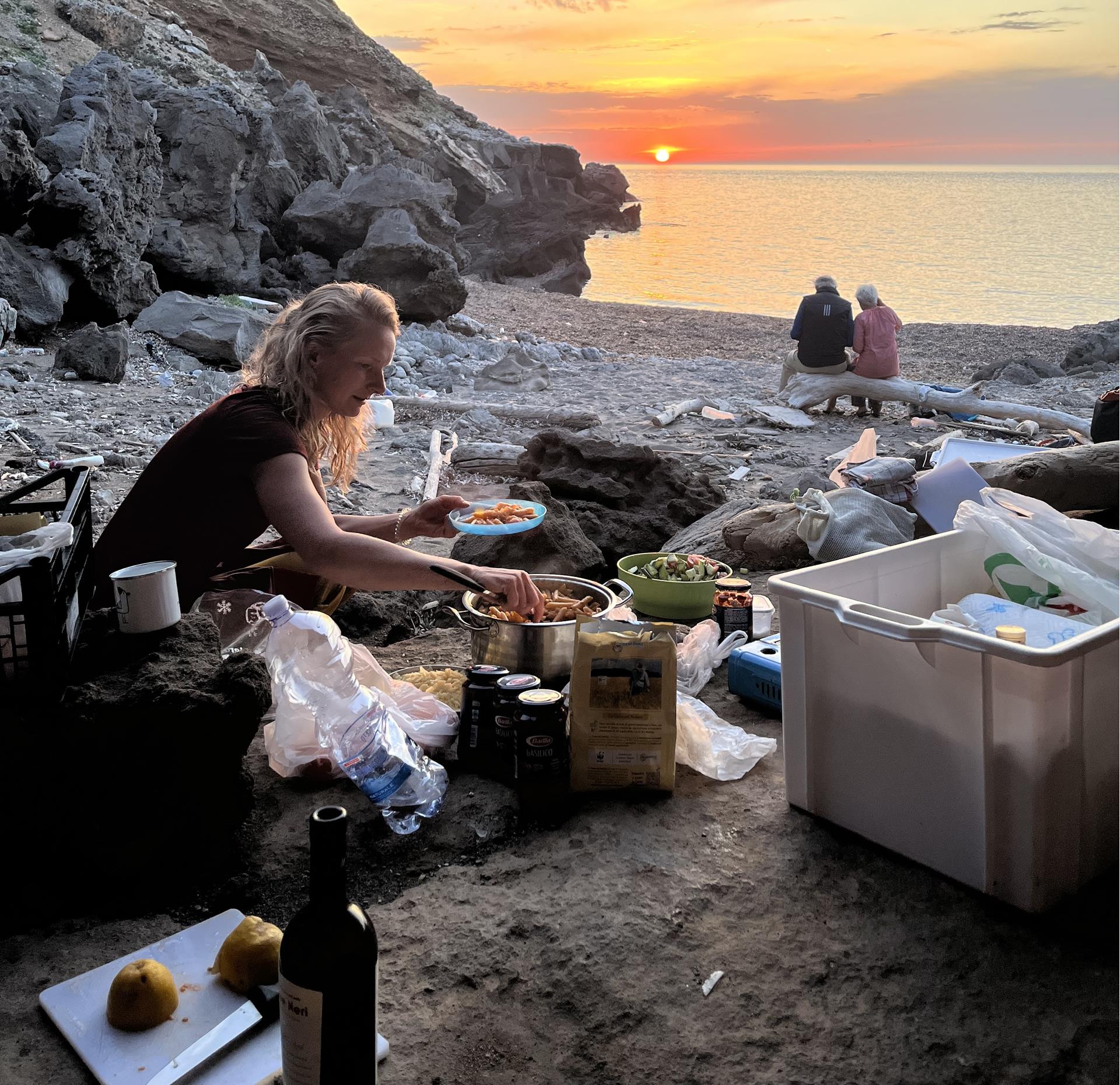 Unser Ziel ist die kleine, verlorene Insel Marettimo vor der Westküste Siziliens. Man erreicht sie mit dem Tragflügelboot in einer guten Stunde Fahrt von Trapani aus. Durch ihre Abgeschiedenheit, aber viel mehr noch durch ihre gebirgige, wilde und zerklüftete Beschaffenheit, ist „unsere Insel“ zum großen Teil touristisch unerschlossen geblieben. Nur auf der Nordostseite gibt es ein Dorf mit wenigen Einwohnern, welches wie die letzte Außenstelle der Zivilisation anmutet, während der Rest der Insel unbewohnt ist. Es gibt keine Straßen, nur wunderbare Wanderwege und jede Rückkehr in das Dorf, wird zu einer Rückkehr in die Zivilisation: nette Bars, frisches Bier, ausgezeichnete Restaurants, warme Duschen, weiche Betten.