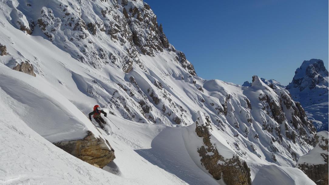 Das Allerwichtigste, um gut freeriden zu können, ist zweifelsohne der Schnee. Deshalb bieten wir an, genau dort unterwegs zu sein, wo es den Pulverschnee auch gibt. Die vergangenen Jahre haben gezeigt, dass entweder die Alpensüd-, oder eben die Alpennordseite von Frau Holle bevorzugt behandelt wird.