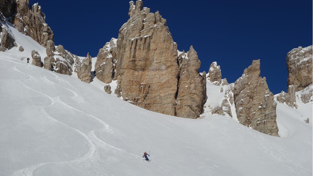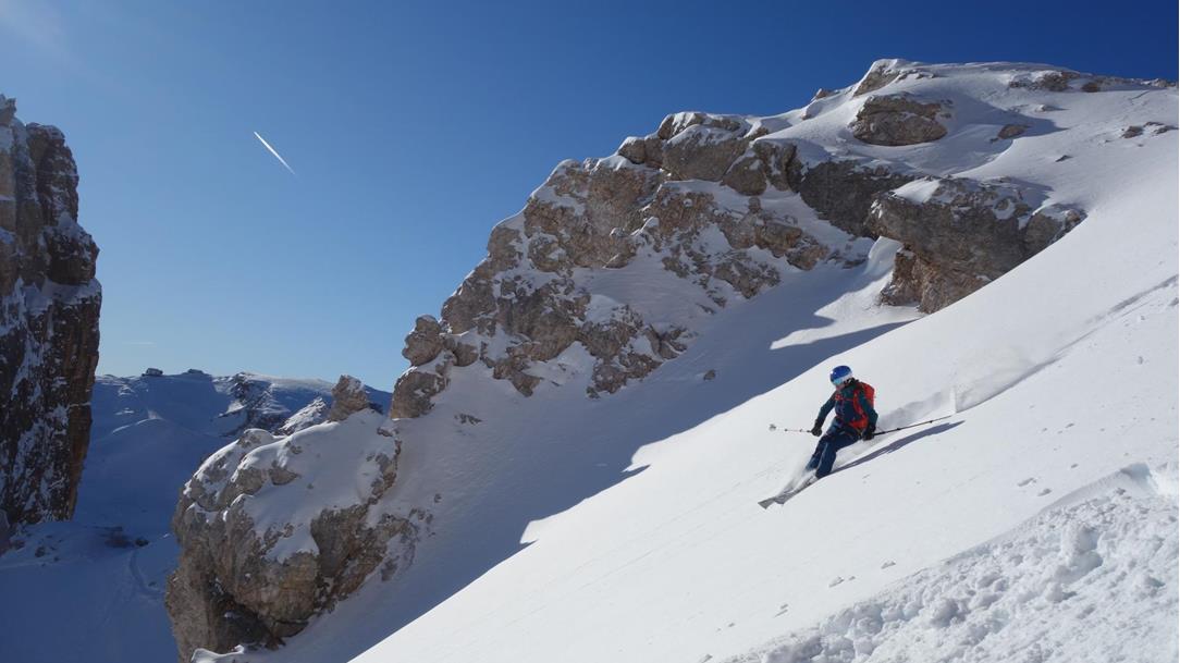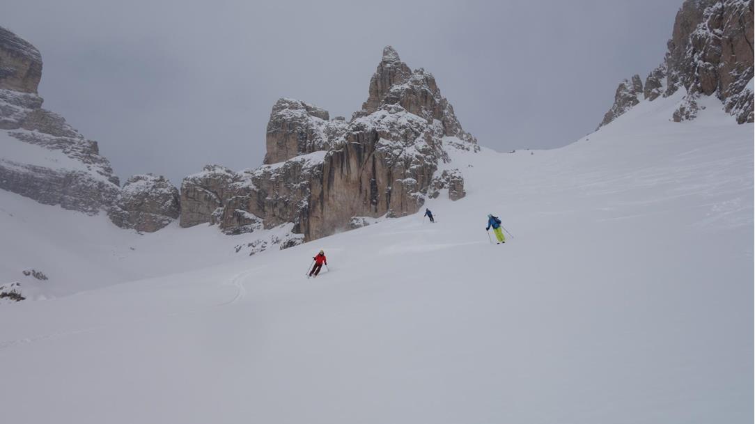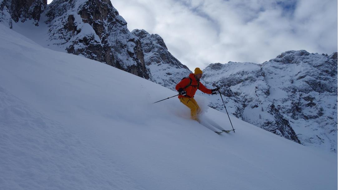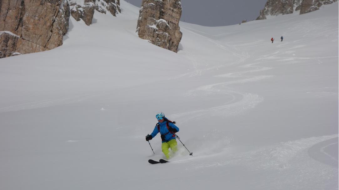 Dementsprechend möchten wir unsere Freeride-Ziele ansteuern. Dass wir wenn möglich in unseren heimatlichen Dolomiten bleiben, hat mit der landschaftlichen Einmaligkeit zu tun und mit der Tatsache, dass wir dort als Locals jene Touren aussuchen können, wo gerade die besten Verhältnisse herrschen. Fürs "Bergauf" werden bei diesem Programm vorwiegend die Liftanlagen genutzt, trotzdem kommt es vor, dass kleinere Aufstiege zu Fuß bewältigt werden müssen.
