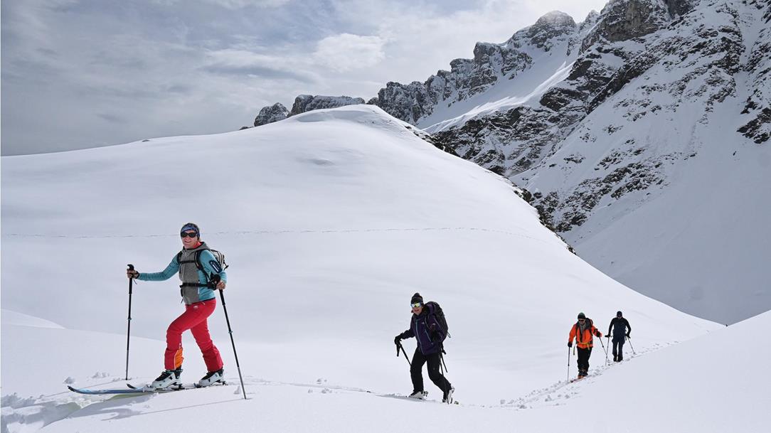 Um sich Schritt für Schritt dem selbstständigen Skitourengehen anzunähern, will der Umgang mit der Materie Schnee gelernt sein. In diesem Grundkurs werden wir ganz nach dem Motto "learning by doing" vorwiegend im freien Skigelände unterwegs sein. Das Aufsteigen mit Fellen, Spitzkehren, Abfahren mit Tourenausrüstung, der richtige Umgang mit der Standardnotfallausrüstung u.v.a. sind dabei die wichtigsten Inhalte. Auch theoretische Inhalte, wie Schnee- und Lawinenkunde, Tourenplanung, Ausrüstung u.v.a. wird in diesen Tagen gelernt.