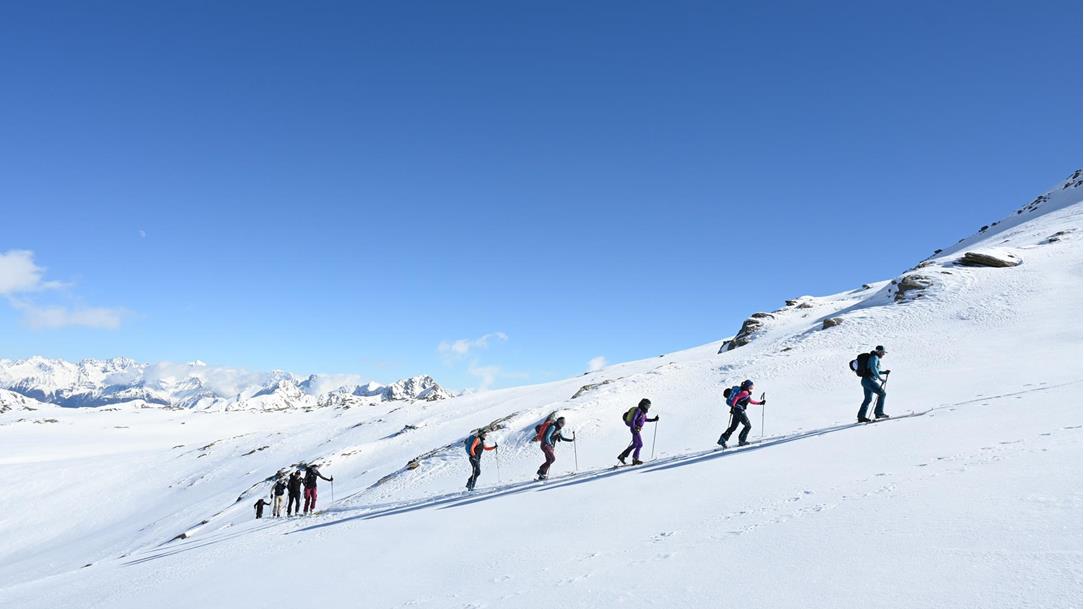 - Abfahren mit Tourenausrüstung: Verbessere deine Abfahrtstechnik im variablen Schnee.