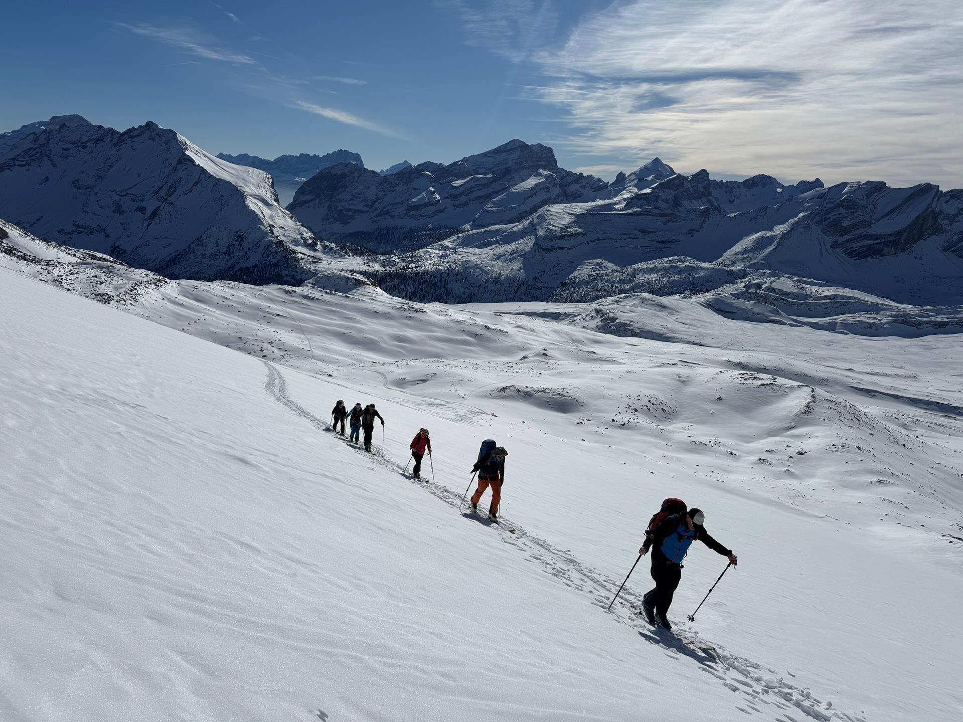 Die etwas andere Dolomitendurchquerung. Die klassische Durchquerung ist zweifelsohne eine schöne und beeindruckende Tour. Allerdings führt sie in ihrem zentralen Abschnitt doch durch ein mit Liften in der Zwischenzeit stark erschlossenes Gebiet hindurch. Genau dem wollen wir mit diesem Programm ausweichen. Dementsprechend sind wir auf den allermeisten Teilstrecken auf Touren unterwegs, die nicht so bekannt und begangen sind.