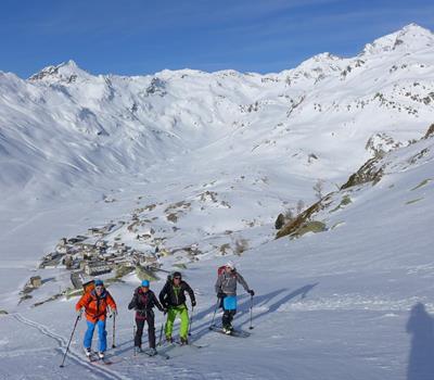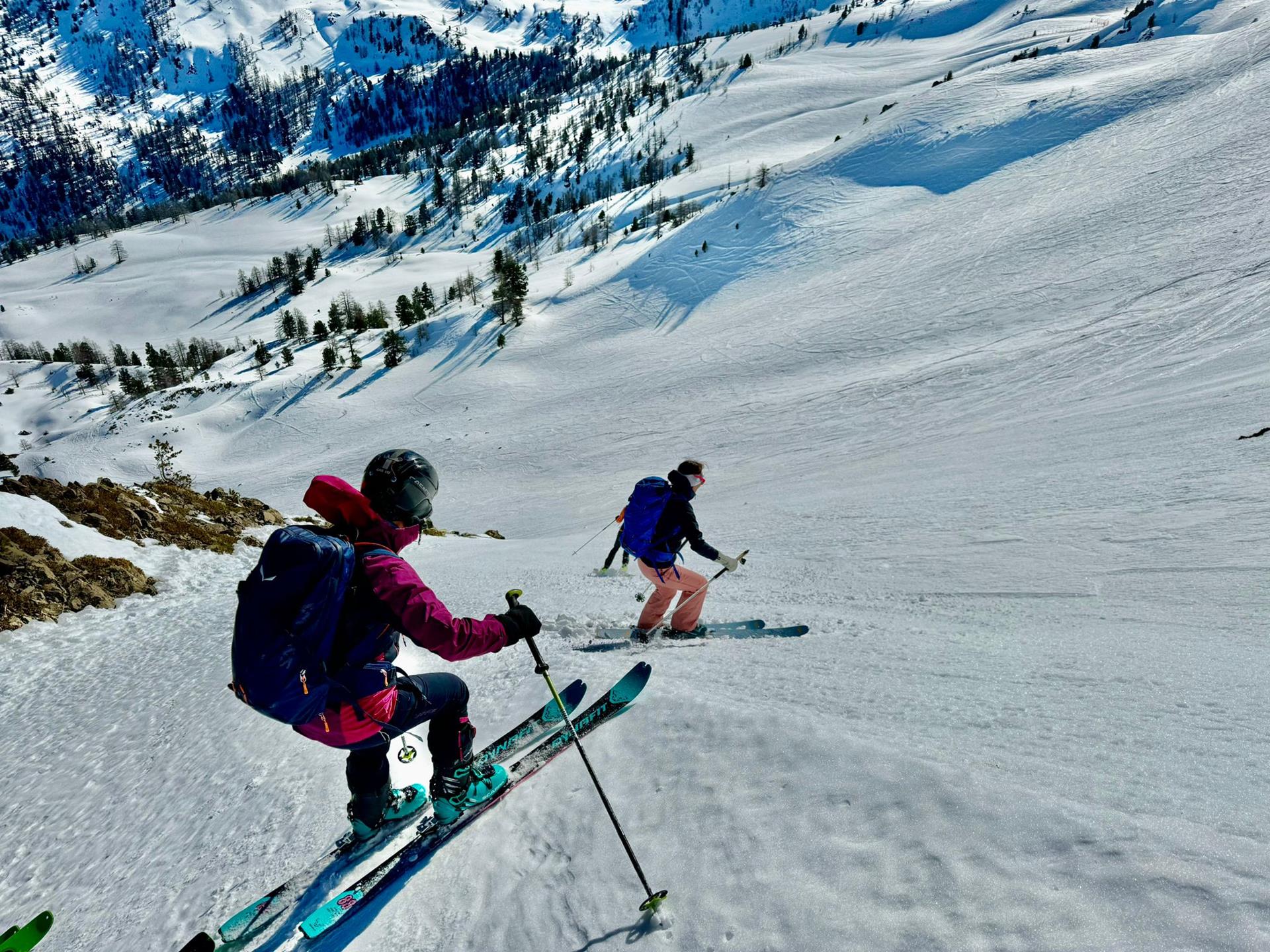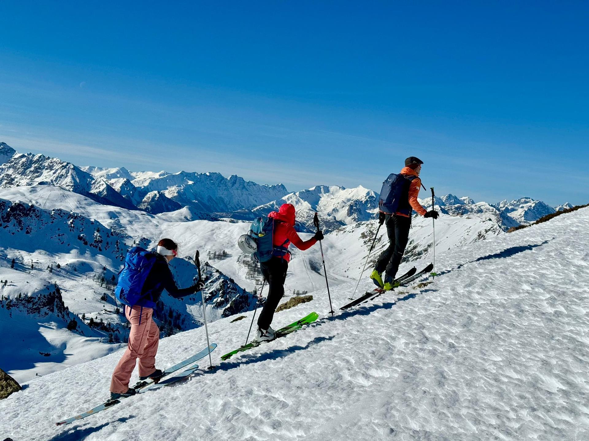 Abwechslungsreiche Geländeformen, lawinensichere Waldtouren, Firnhänge im Frühling, versteckte Seitentäler und sogar gelegentlich liftunterstützte Aufstiege mit langen Abfahrten. Für jede Schneelage, jedes Level, jeden Muskelkater ist das Richtige dabei.