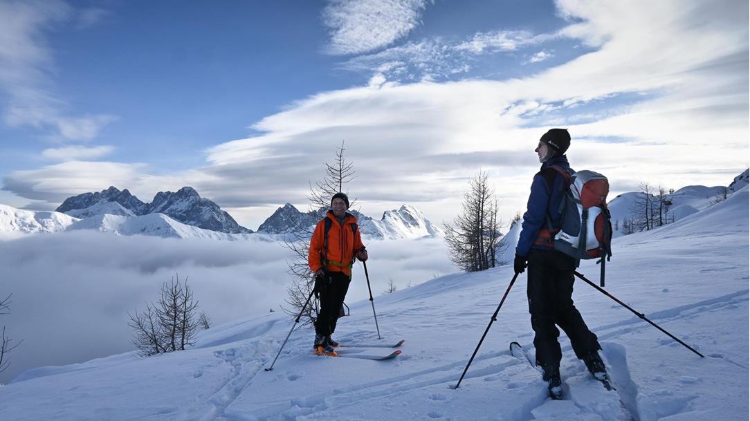 Unsere Skitourenwoche richtet sich an Genießer:innen: Die Touren sind technisch nicht allzu anspruchsvoll, bieten aber dennoch großartige alpine Erlebnisse. Sanfte Aufstiege, freie Hänge und stille Täler prägen die Region. Viele Routen beginnen gemütlich auf Forstwegen durch verschneite Hochtäler und führen weiter hinauf auf sonnige Almen und aussichtsreiche Grate. Von den Gipfeln schweift der Blick bei klarer Sicht bis zu den Sextner und Lienzer Dolomiten – ein echtes Panorama-Highlight.