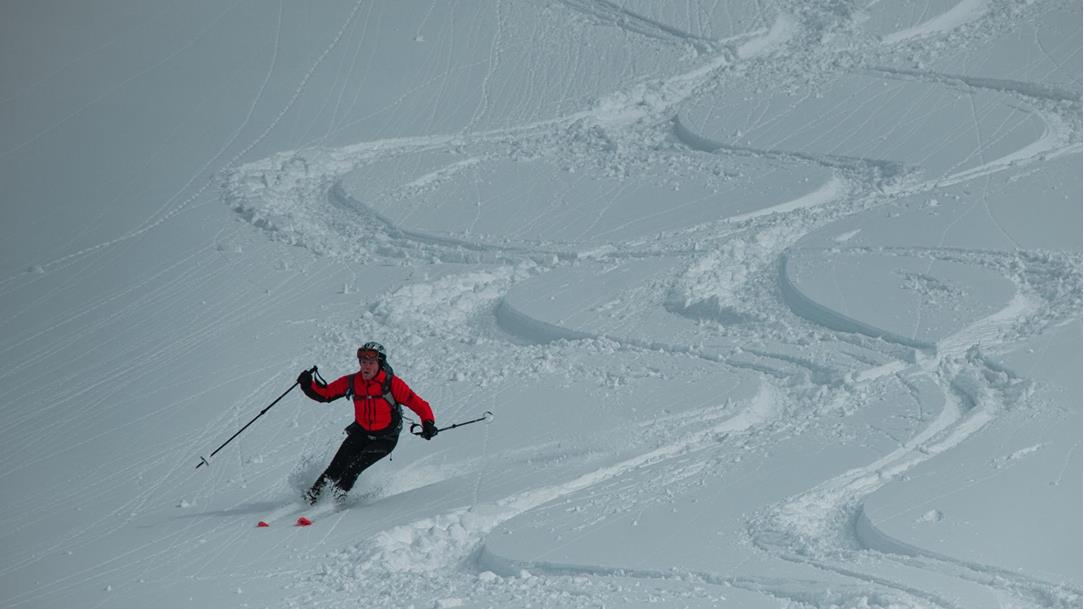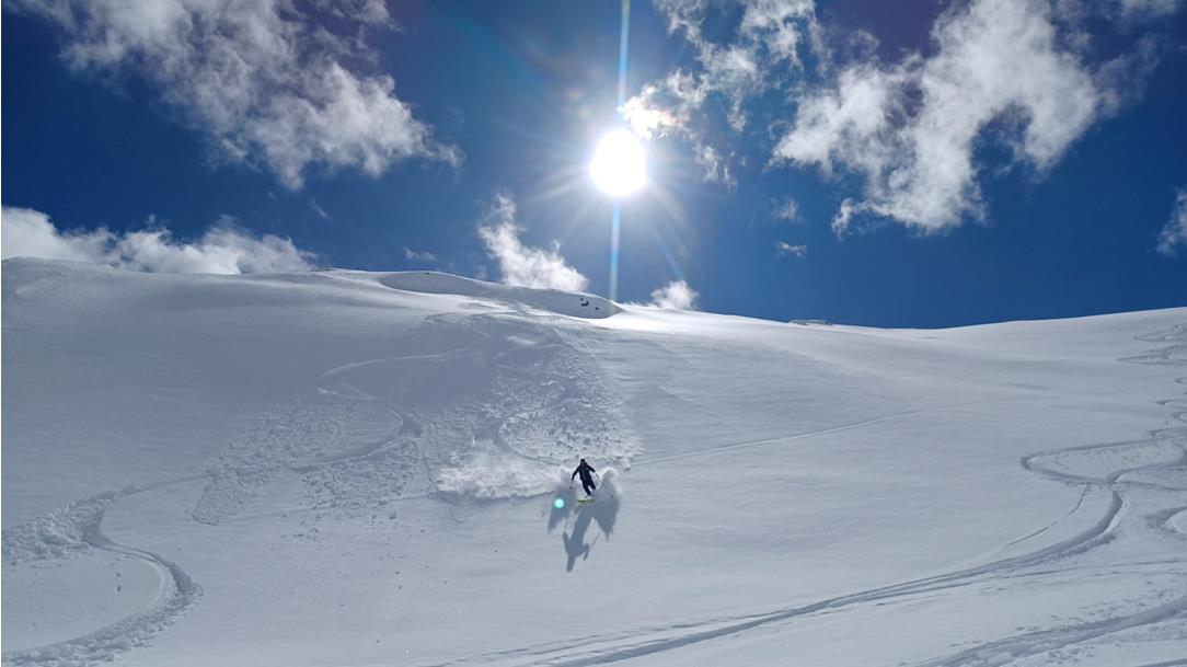 Von den Gipfeln aus sieht man die herrlich nahegelegenen Dolomiten. Danach geht es bei Pulverschneehängen, die das Skifahren zum reinstem Vergnügen machen, wieder hinunter.
