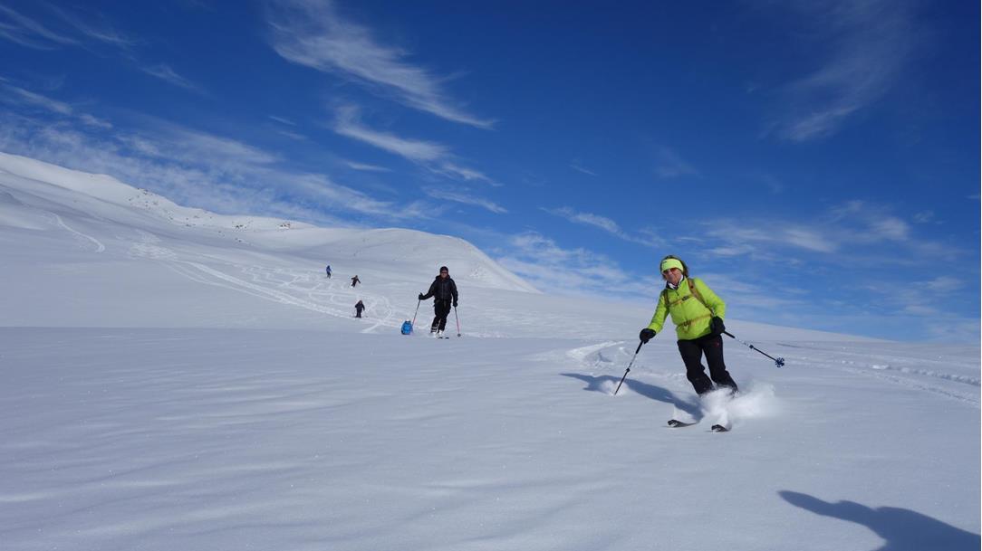 Die Gipfel sind fast immer mit angeschnallten Skiern zu erreichen und die Abfahrten sind nicht schwieriger als die Aufstiege - für gemäßigte Skitourengeher, die neben schönen Touren auch den gemütlichen Teil nicht zu kurz kommen lassen wollen, besonders beliebt.