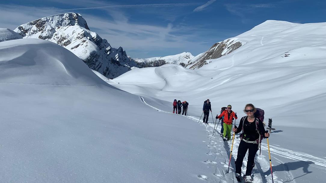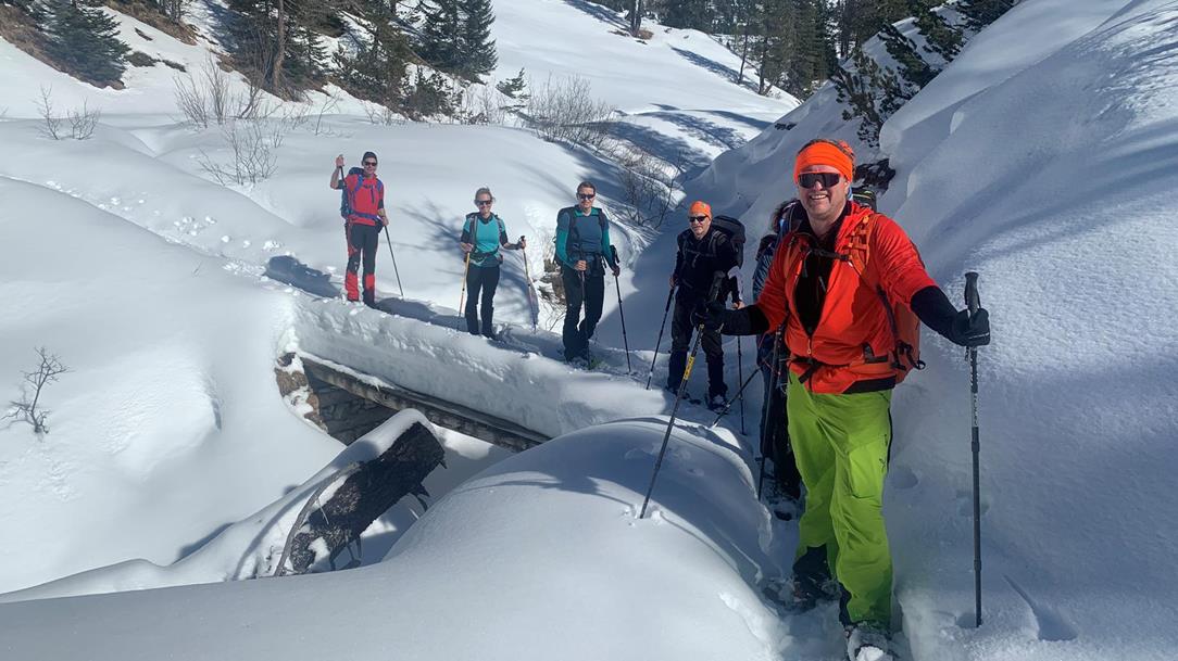 "Quer durch" hat einfach mehr. Ob im Sommer auf den beschilderten Wanderwegen, im Winter klassisch mit Skitourenski und Fellen, oder eben wie bei diesem Programm mit Schneeschuhen, macht dabei keinen großen Unterschied.