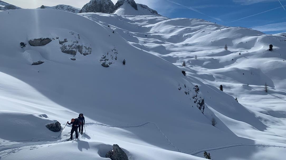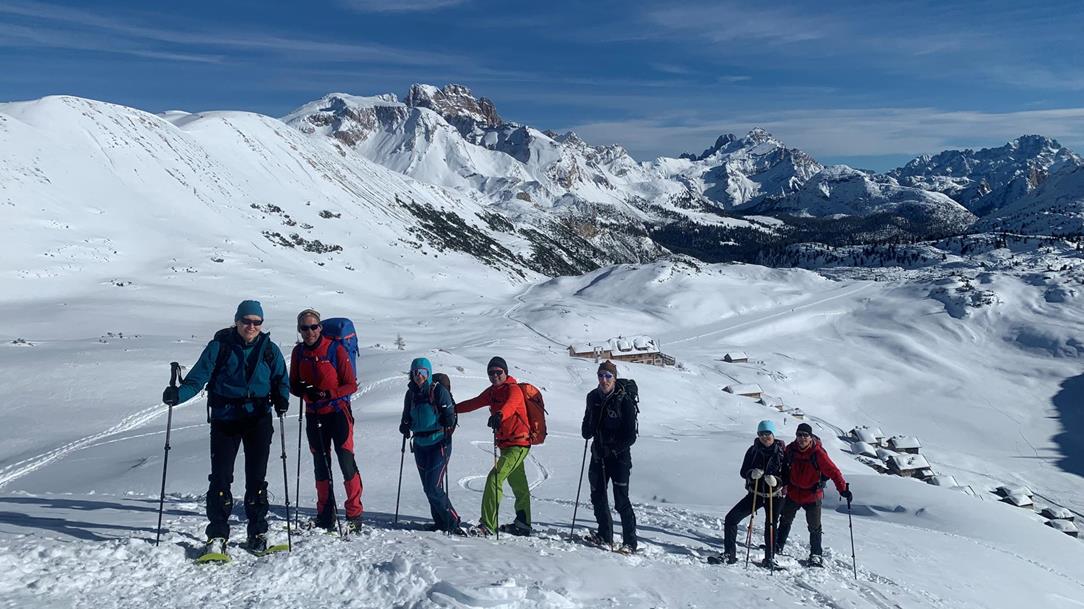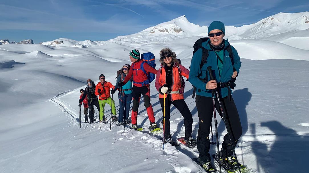 Mit den Schneeschuhen gestartet wird im Gadertal (Alta Badia), um am Ende der Woche bei der letzten Etappe die Drei Zinnen aus nächster Nähe zu erleben.