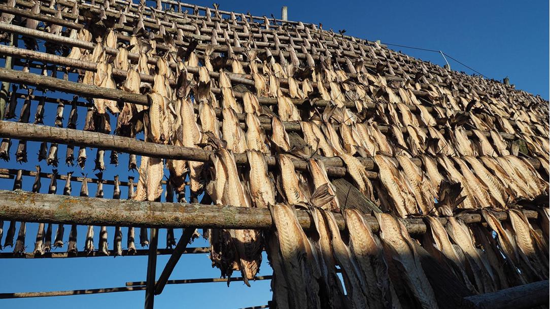 Dazu die glasklare Luft, welche in Kombination mit der tiefstehenden Polarsonne, den gleißend weißen Bergen und den tiefblauen Fjorden ein ganz besonderes, arktisches Licht in allen erdenklichen Blauabstufungen erzeugt. All dies macht die Beliebtheit der Lofoten in der Skitourengemeinschaft verständlich und so tummeln sich hier trotz des oft sehr unberechenbaren Wetters Tourengeher aus aller Herren Länder. Aber wirklich bekannt sind die Lofoten nicht wegen ihrer wunderbaren Landschaft und Berge, sondern wegen des Stockfisches, der jedes Jahr zum Laichen hierherkommt und die wichtigste Einnahmequelle der Einheimischen ist.