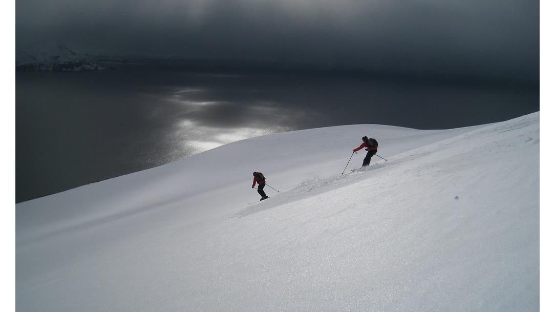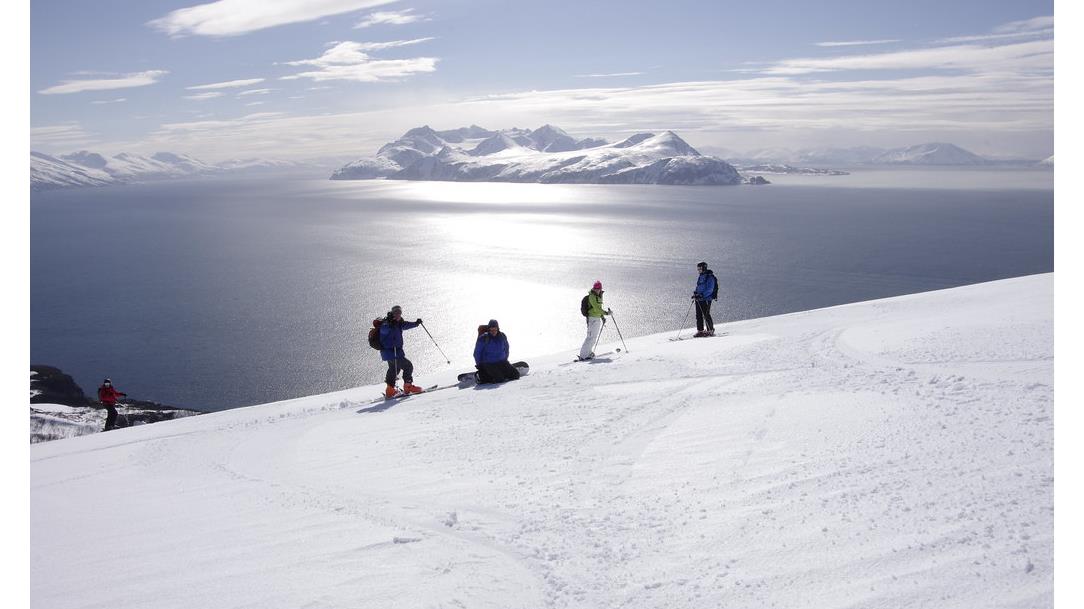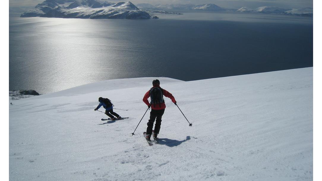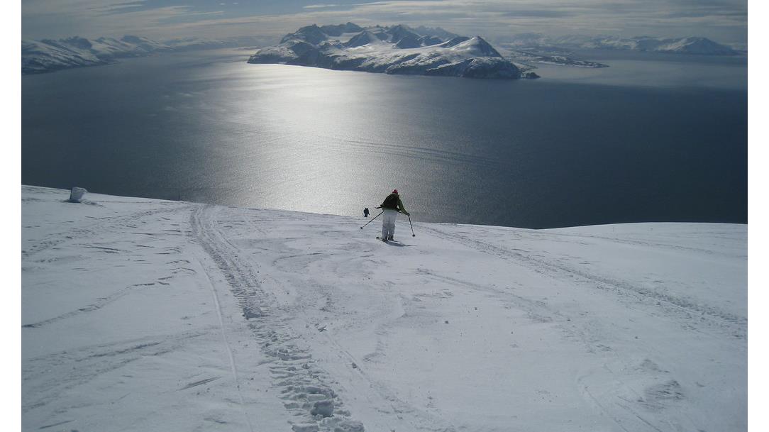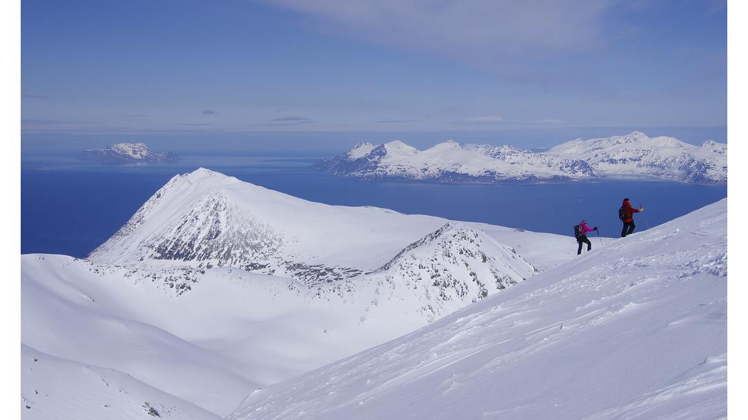 Seit etlichen Jahren bereisen wir die Berge um Tromsø vom Boot aus. Dieses Jahr wollen wir die Lyngenalpen vom Festland aus erkunden, um die vom Schiff aus nicht zu erreichenden Berge zu besteigen. Das gut ausgebaute Straßennetz & die Fährverbindungen ermöglichen einen leichten Zugang zu den Touren sowohl im Inneren, als auch entlang der Fjorde. Skitouren nahe am 70° Breitengrad sind an sich schon etwas Besonderes, umso mehr wenn die Abfahrten bis zum Meere gehen. Glasklare Luft, der weite Blick übers Meer zu den nächsten Tourenzielen und einsame Skitouren sorgen für Begeisterung. Die tiefstehende Polarsonne, die Berge im gleisenden Weiß und die tiefblauen Fjorde erzeugen ein ganz besonderes, arktisches Licht in allen erdenklichen Blauabstufungen. Mit etwas Glück lassen sich nach den langen Sonnenuntergängen auch die phantastischen Polarlichter beobachten.