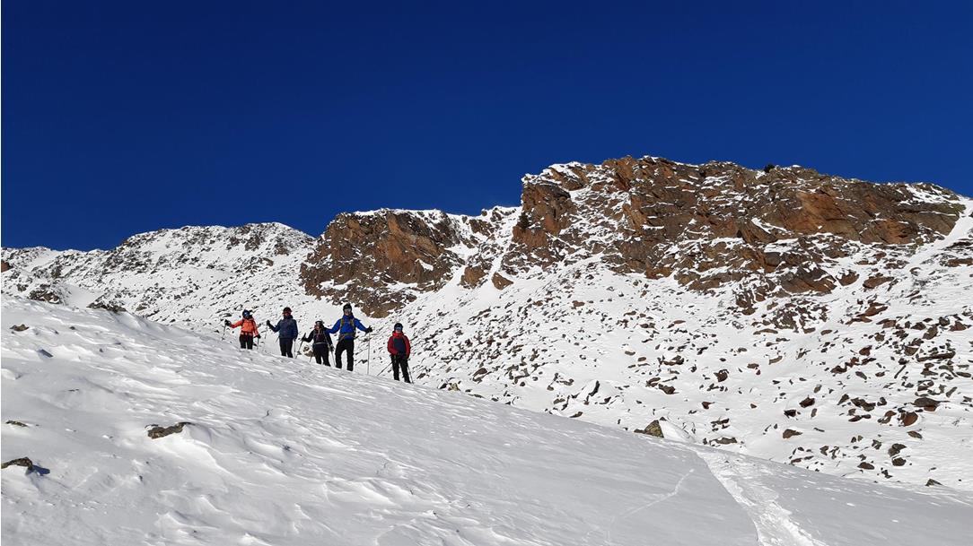 Diese Durchquerung ist ideal für konditionsstarke und erfahrene Skitourengeherinnen, die ihre Leidenschaft für die Berge voll ausleben möchten. Bei dieser Tour schlagen die Herzen höher, denn hier erwarten euch Gletscherquerungen, scharfe Grate, weitläufige Firnhänge und lohnende Aufstiege. Jeden Tag wird von einem Tal ins nächste gewechselt, während nachts komfortabel im Tal übernachtet wird.