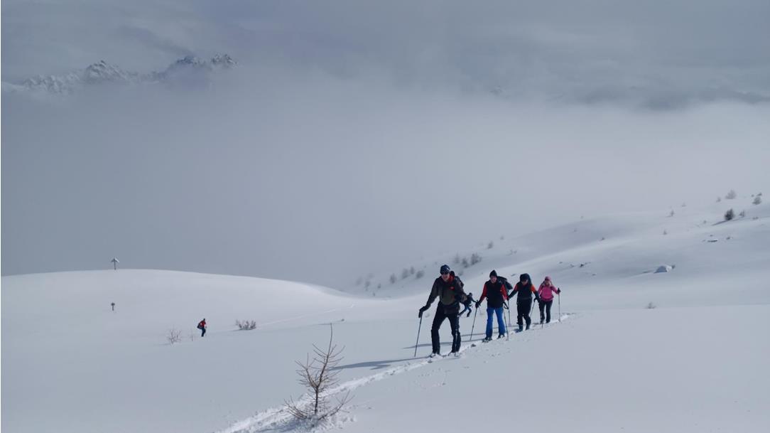 Unsere Unterkunft, das Hotel Waldheim, bietet eine gemütliche Atmosphäre und alles, was das Tourengeher-Herz begehrt. Nach einem erlebnisreichen Tag in den Bergen entspannen wir in der Kräutersauna und lassen den Abend im urigen Weinkeller ausklingen – bei einer herzhaften Marende mit hausgemachtem Bauernspeck und Käse.