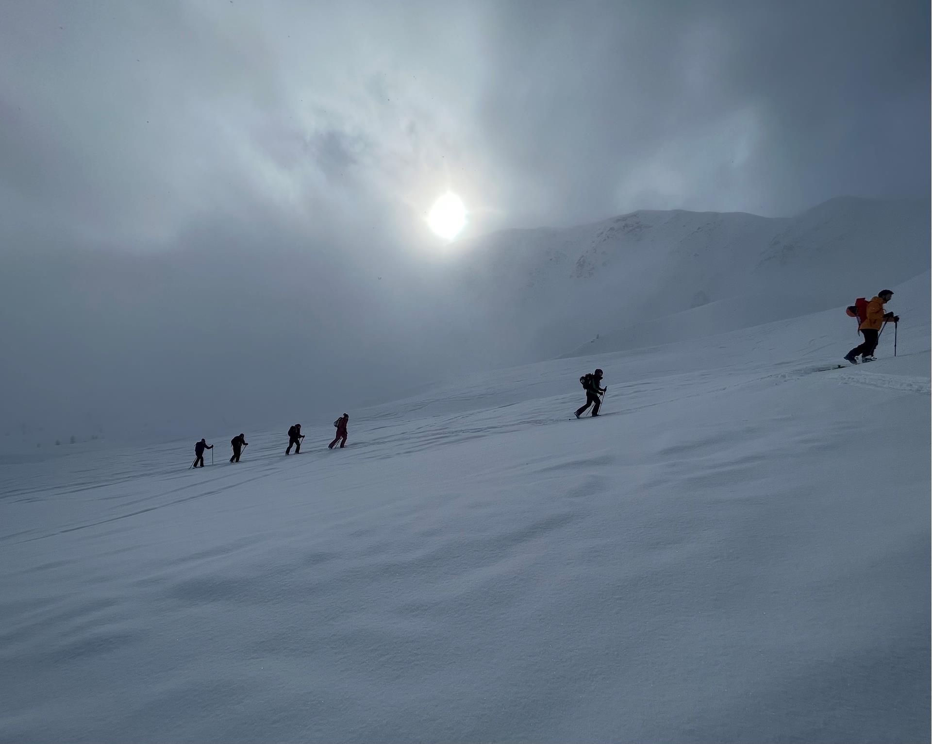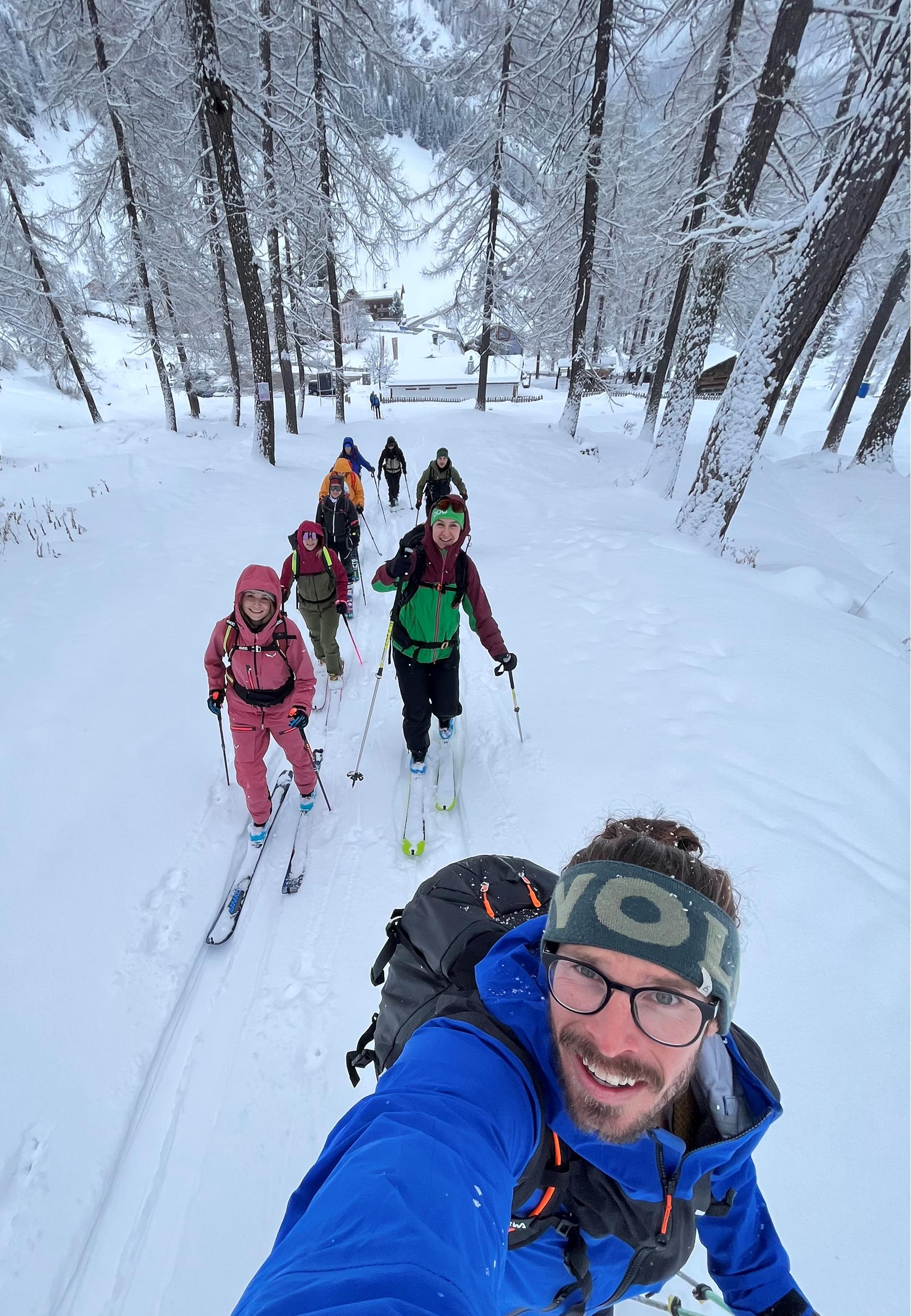 Day 2: Skinning techniques, kick turns, laying tracks and ski techniques in deep snow – learned during a short ski tour (600-800 vertical metres)