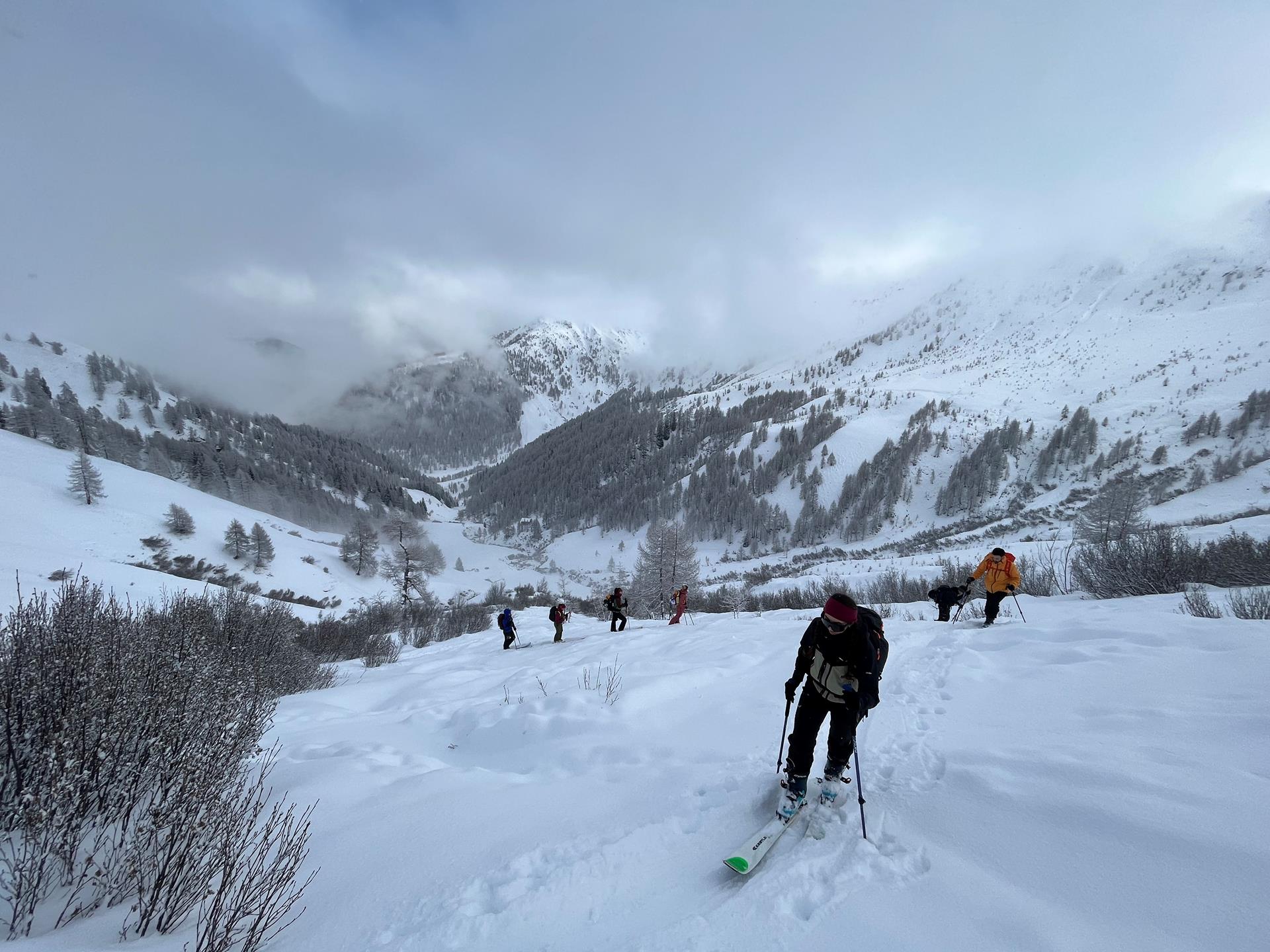 Day 1: Arrival and meet at 08:30 at Ehrenburg / Casteldarne train station. Gear check. Short ski tour with beacon practice and introduction to avalanche rescue techniques.