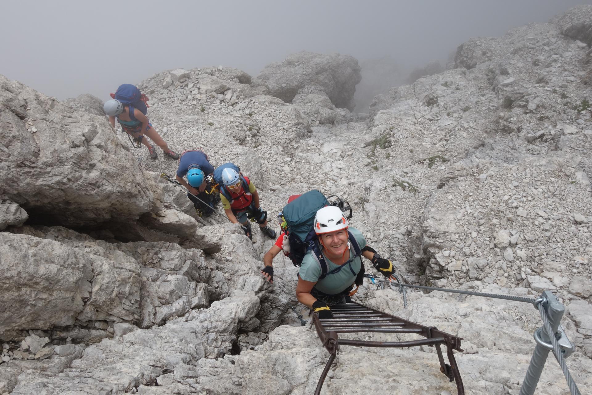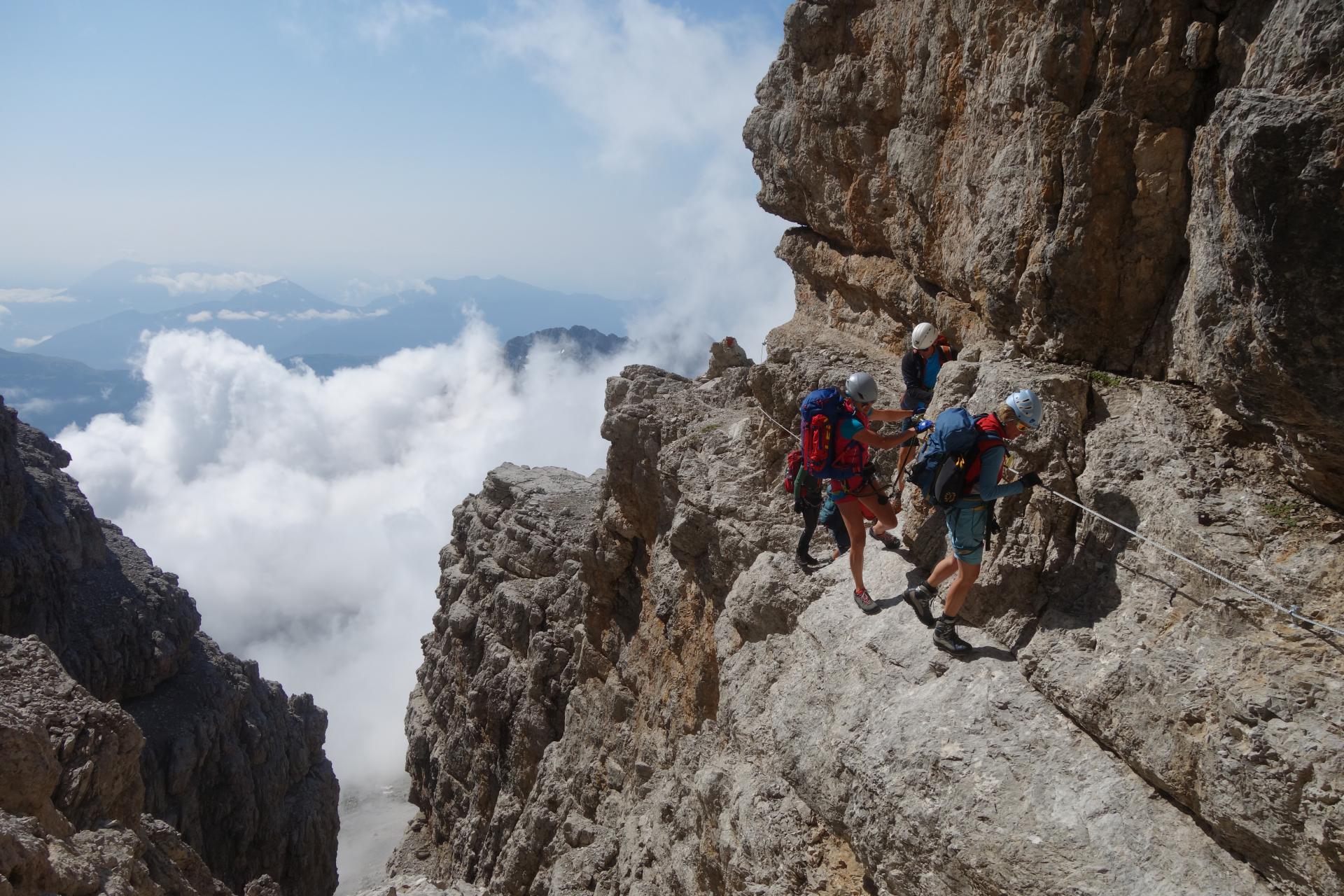 Il Brenta è un vero paradiso per gli amanti delle ferrate. Innumerevoli vie ferrate portano attraverso un mondo roccioso unico. In questa settimana attraversiamo passando di rifugio in rifugio l’intero gruppo di montagne. Le ferrate da fare sono facili ma in parte esposte. Lo scenario è fantastico. I presupposti sono assenza di vertigini e sicurezza nel camminare.