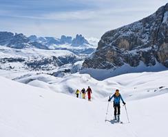 I viaggi di skialp ti porteranno verso vette remote e pendii incontaminati, dove potrai godere di paesaggi mozzafiato e di una pace totale. In piccoli gruppi, avrai l'opportunità di migliorare le tue competenze o di imparare nuove tecniche. Ogni viaggio è progettato per soddisfare le tue esigenze, rendendo unica la tua esperienza sulle Alpi.