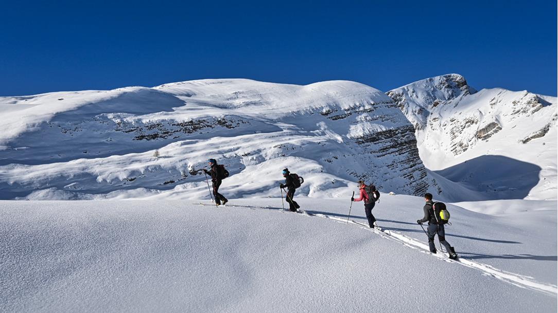 In questi tre giorni trasmettiamo ai partecipanti la tecnica base, la guida alpina vi darà importanti suggerimenti in tema di tecnica di salita e di discesa, e vi trasmetterà le nozioni base di nivologia e pericolo valanghe.