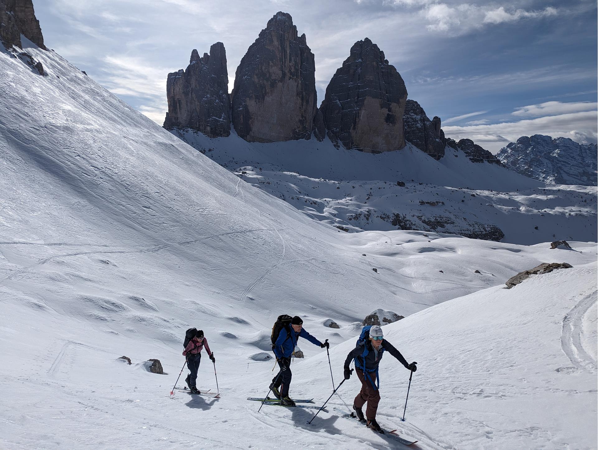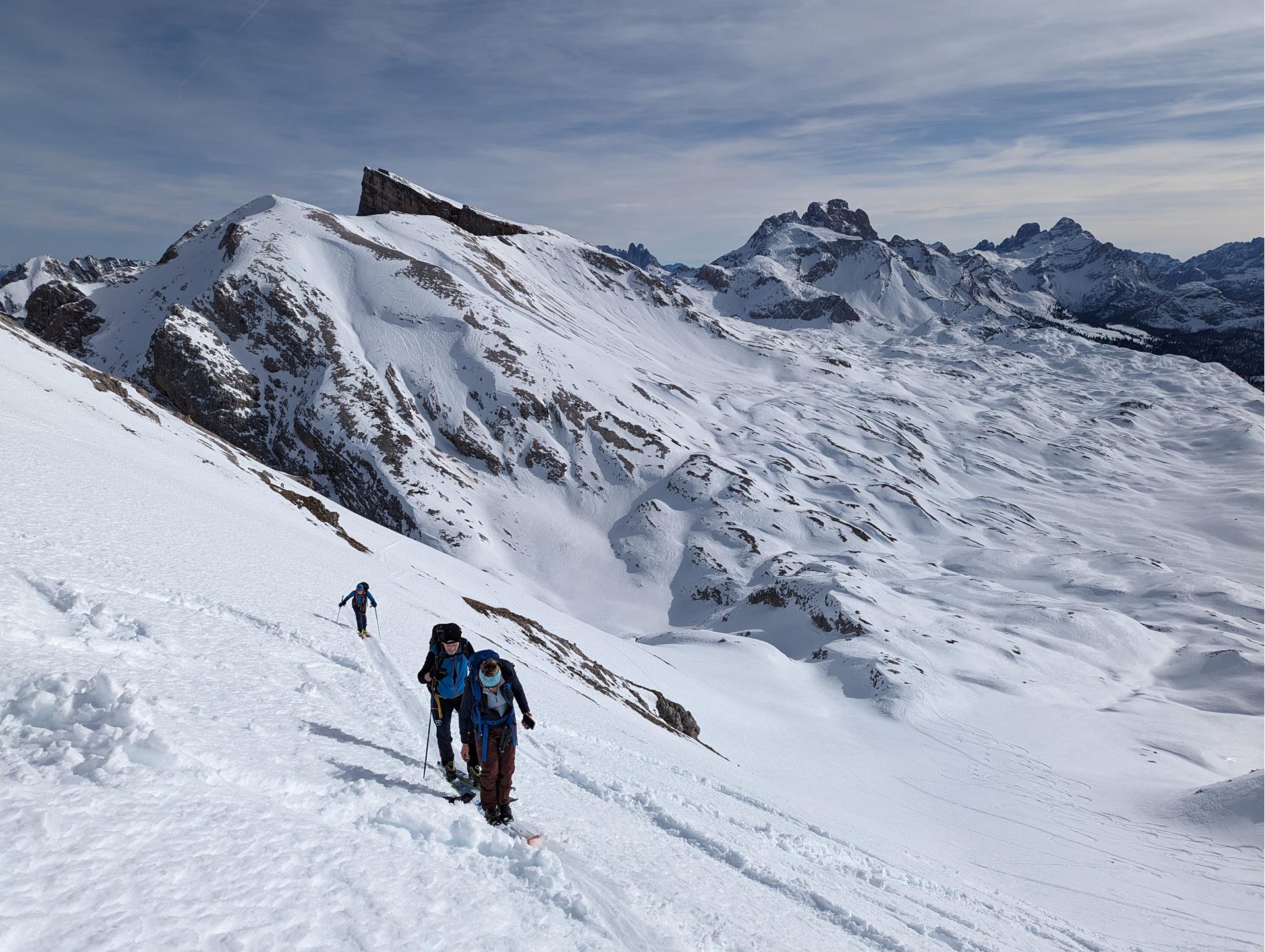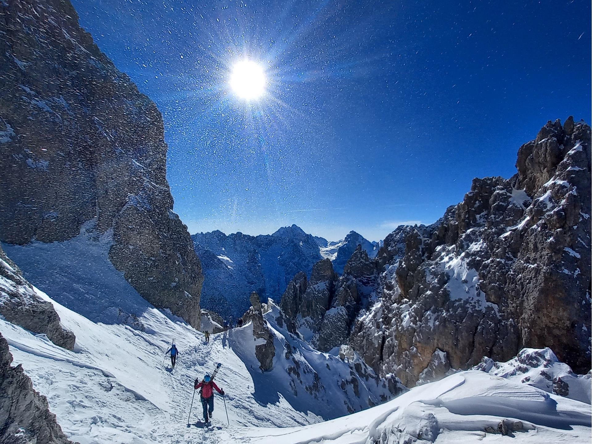 Saltiamo di proposito la lista delle possibili gite, poiché come esperti della zona siamo in grado di proporre in ogni momento le gite sci alpinistiche più adatte nel bel mezzo di questo panorama fantastico di rocce bizzarre.