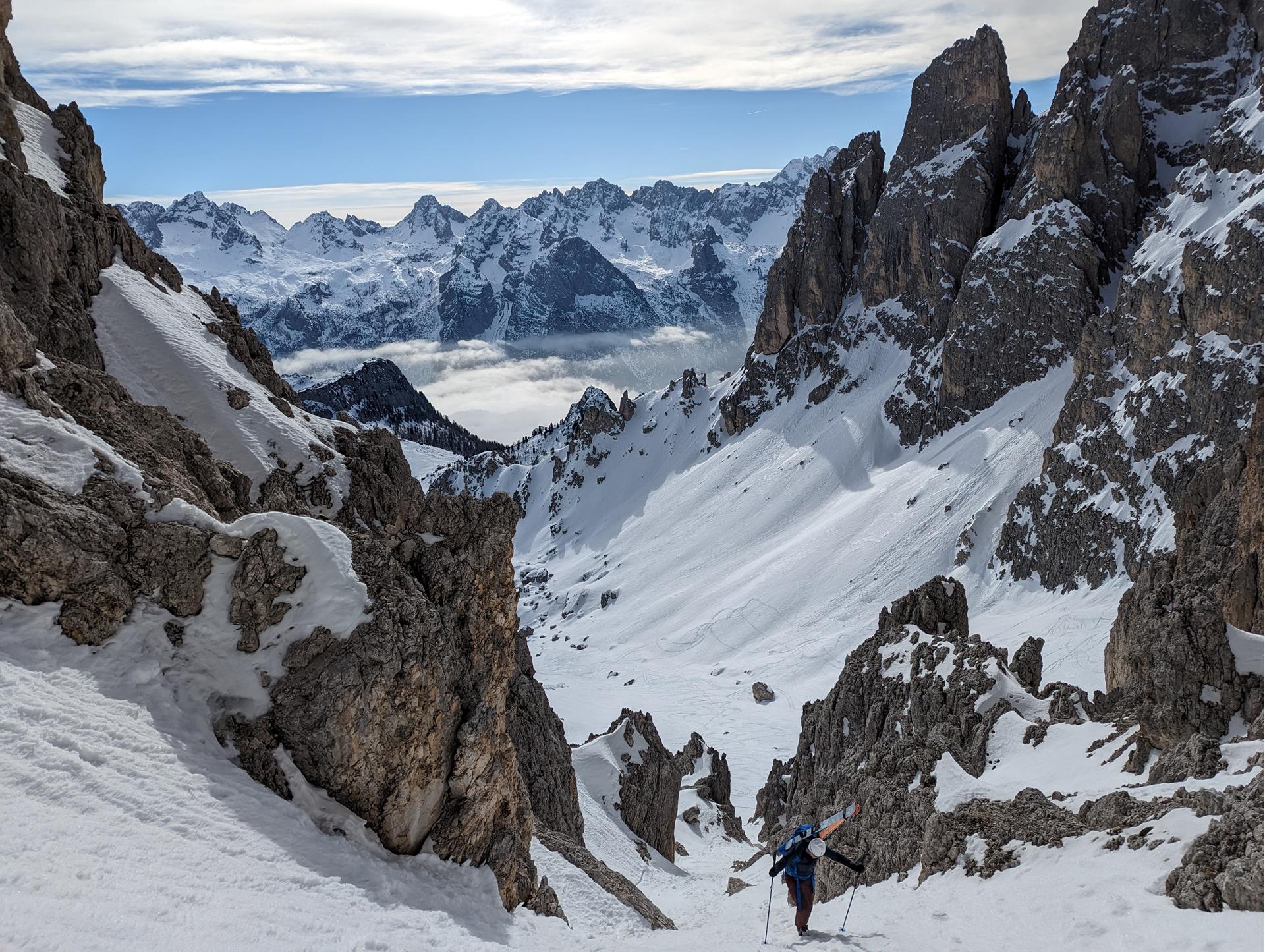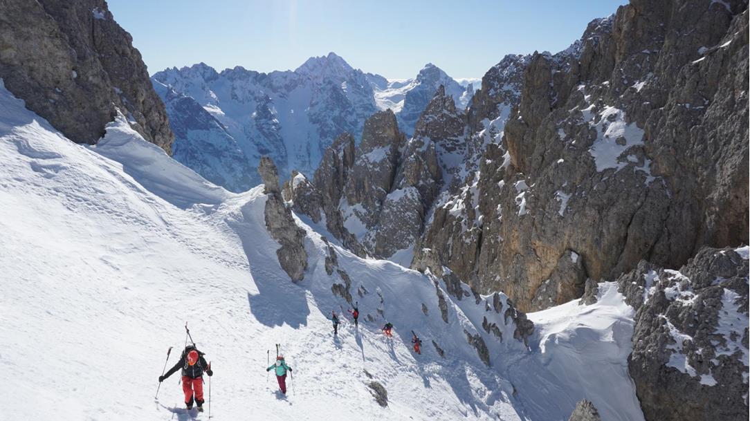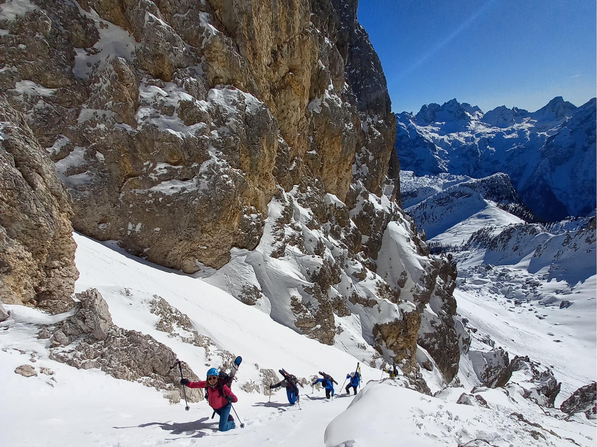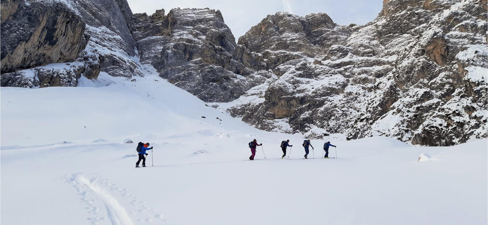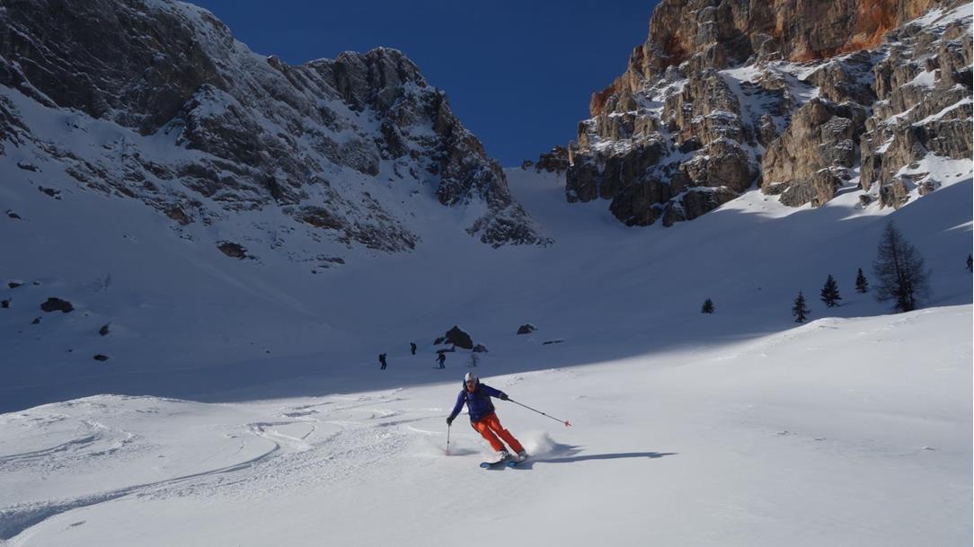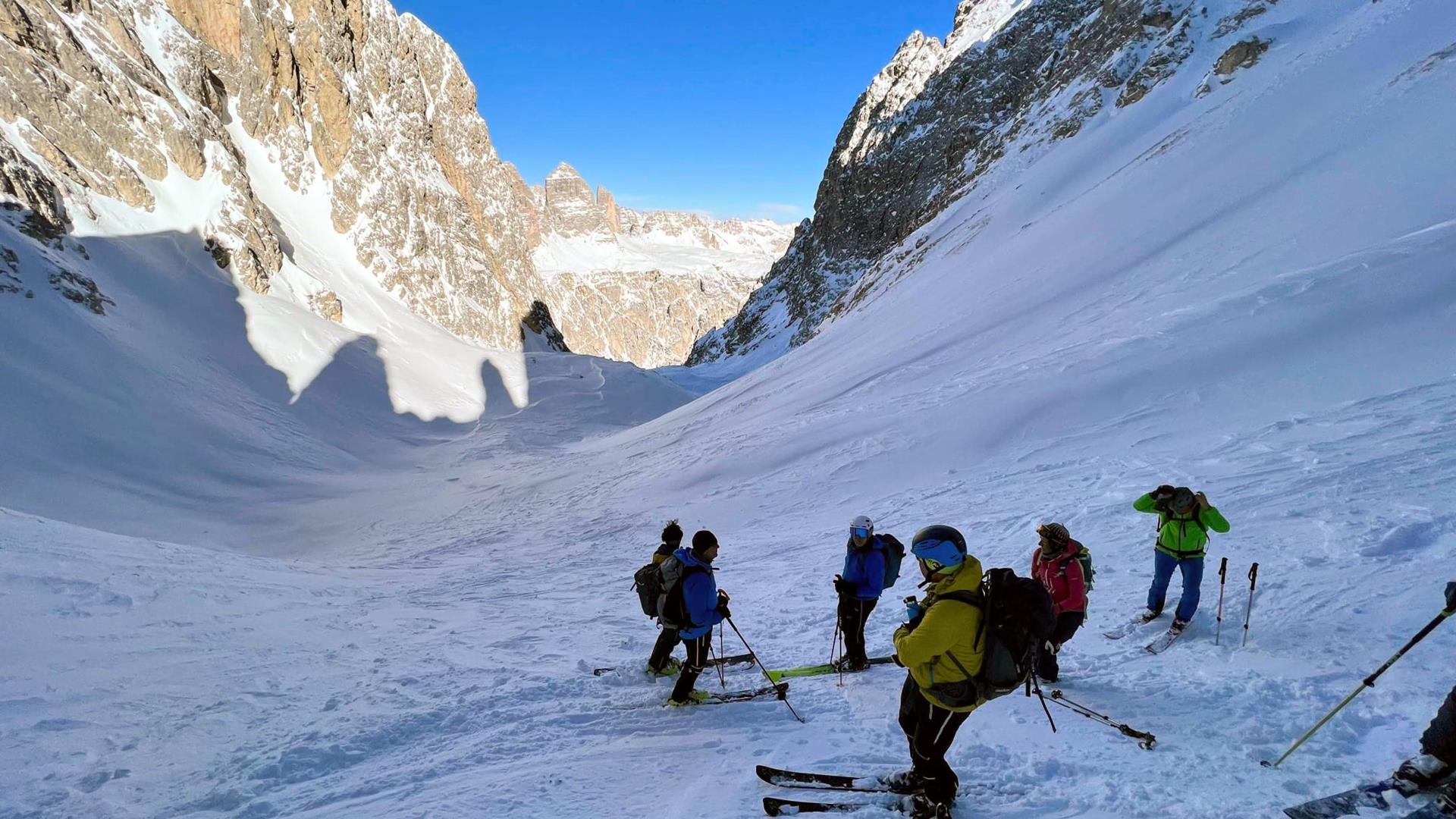 Ma non è affatto vero che d’inverno i “Monti pallidi” sono riservati agli alpinisti “estremi”: in realtà, queste impressionanti roccaforti sono piene di valli nascoste, di ghiaioni e canaloni che offrono tantissime possibilità di salita e di discesa.