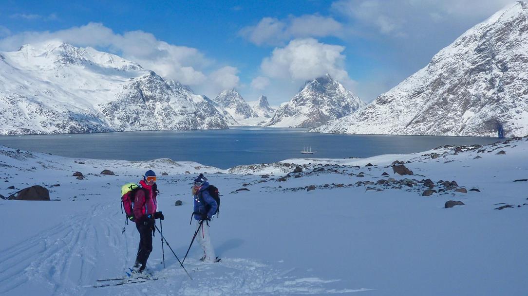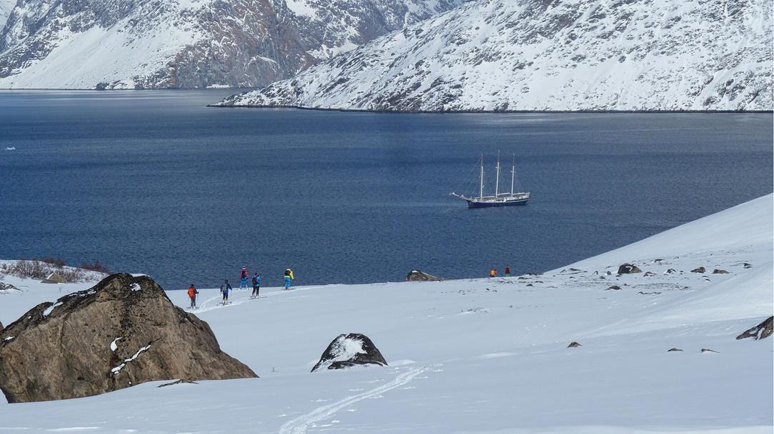 Tra la città di pescatori di Maniitsoq e l'Ewigkeitsfjord troviamo uno spettacolare paesaggio montano con cime innevate e piste da sci ideali.Le più alte superano i 2000 metri. Le viste dalle cime ai fiordi circostanti sono mozzafiato, dopo di che ci aspettano impressionanti discese verso il mare.Il porto di Maniitsoq, privo di ghiacci, è il punto di partenza ideale per la nostra nave.Durante il viaggio, l'equipaggio locale ci offre interessanti spunti di riflessione sulla vita di bordo.